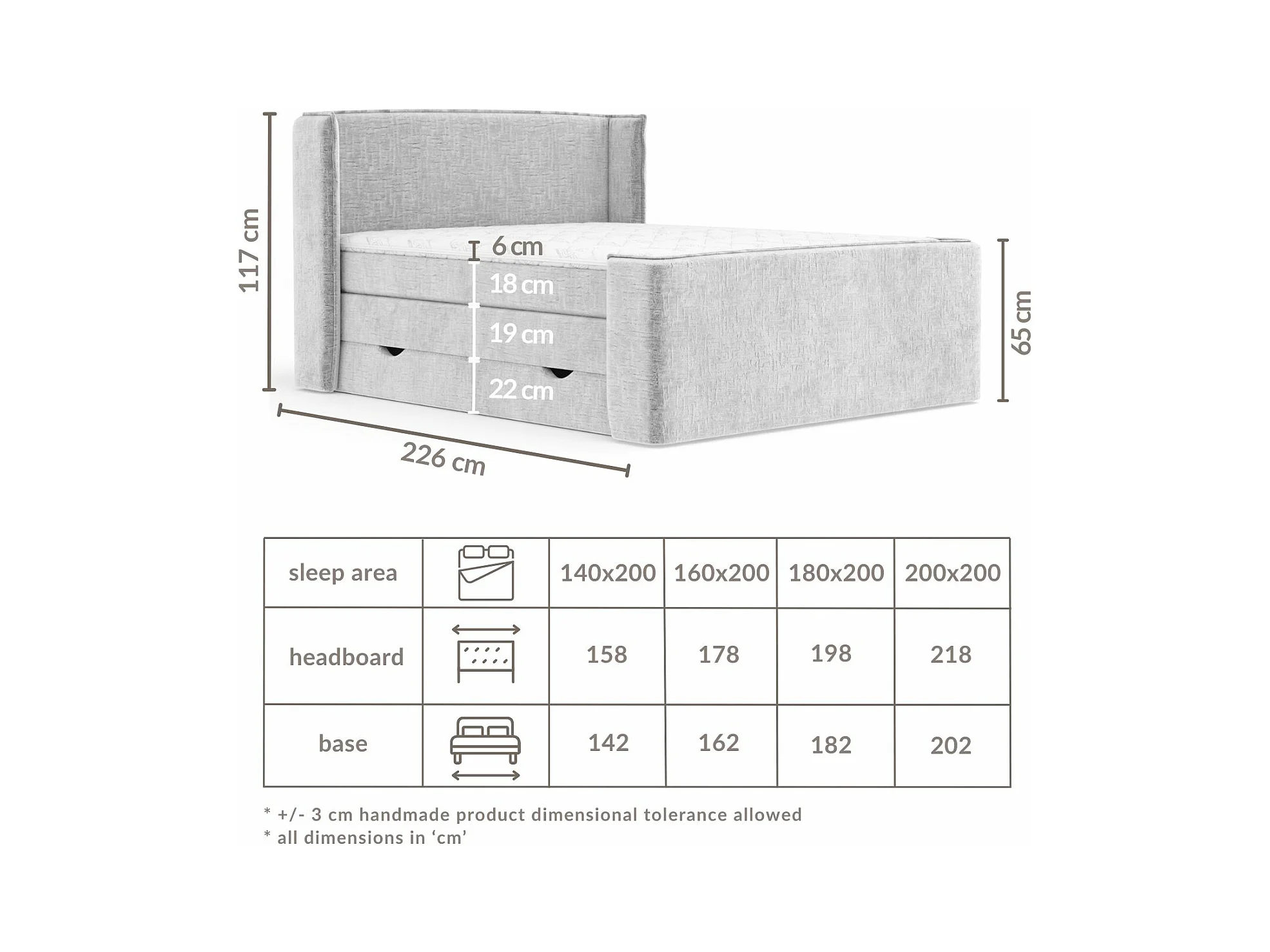 Lit boxspring en tissu chenille Freeland - matelas - surmatelas - 160x200 cm - anthracite
