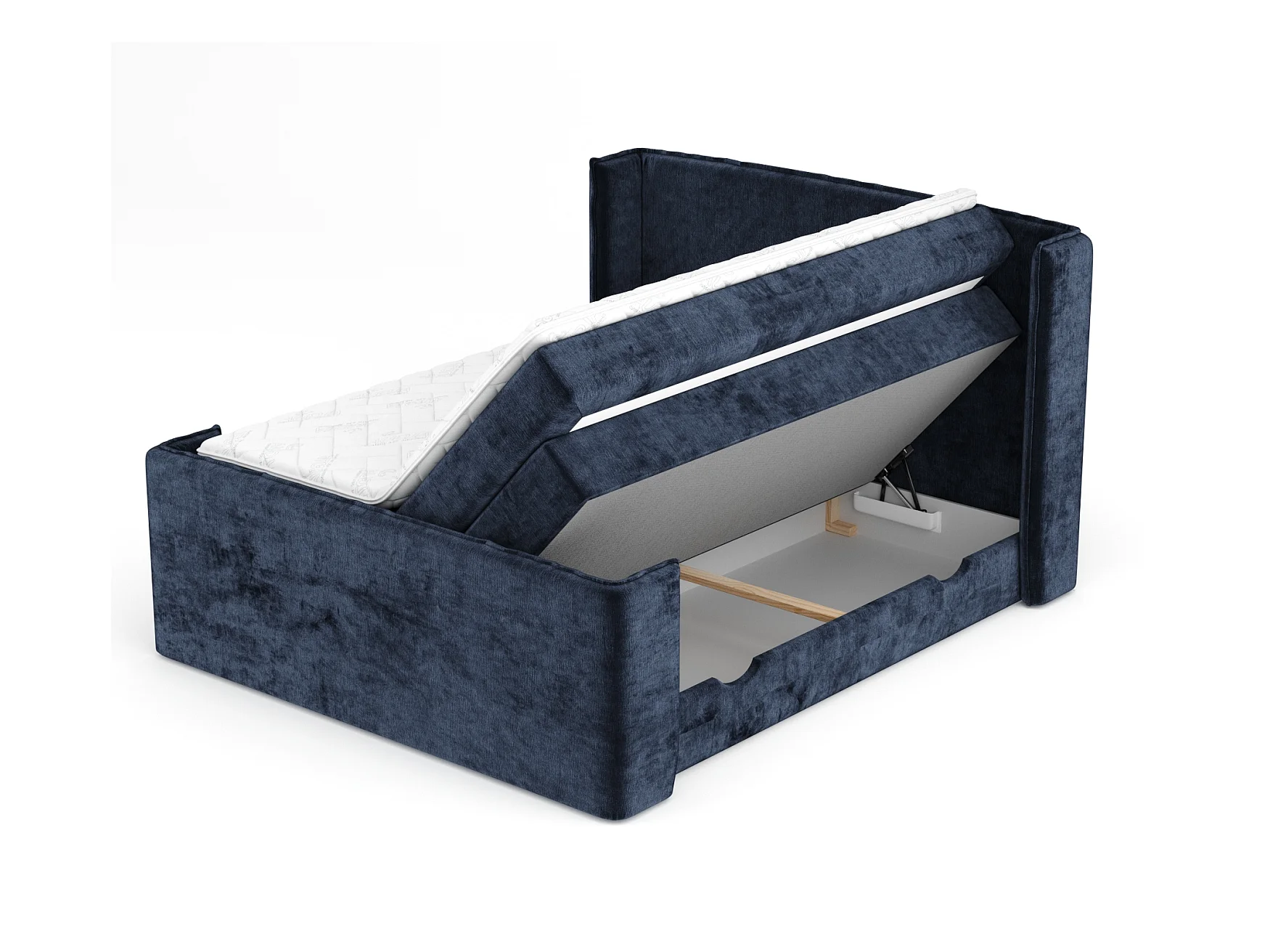 Lit boxspring en tissu chenille Freeland - matelas - surmatelas - 200x200 cm - bleu marine