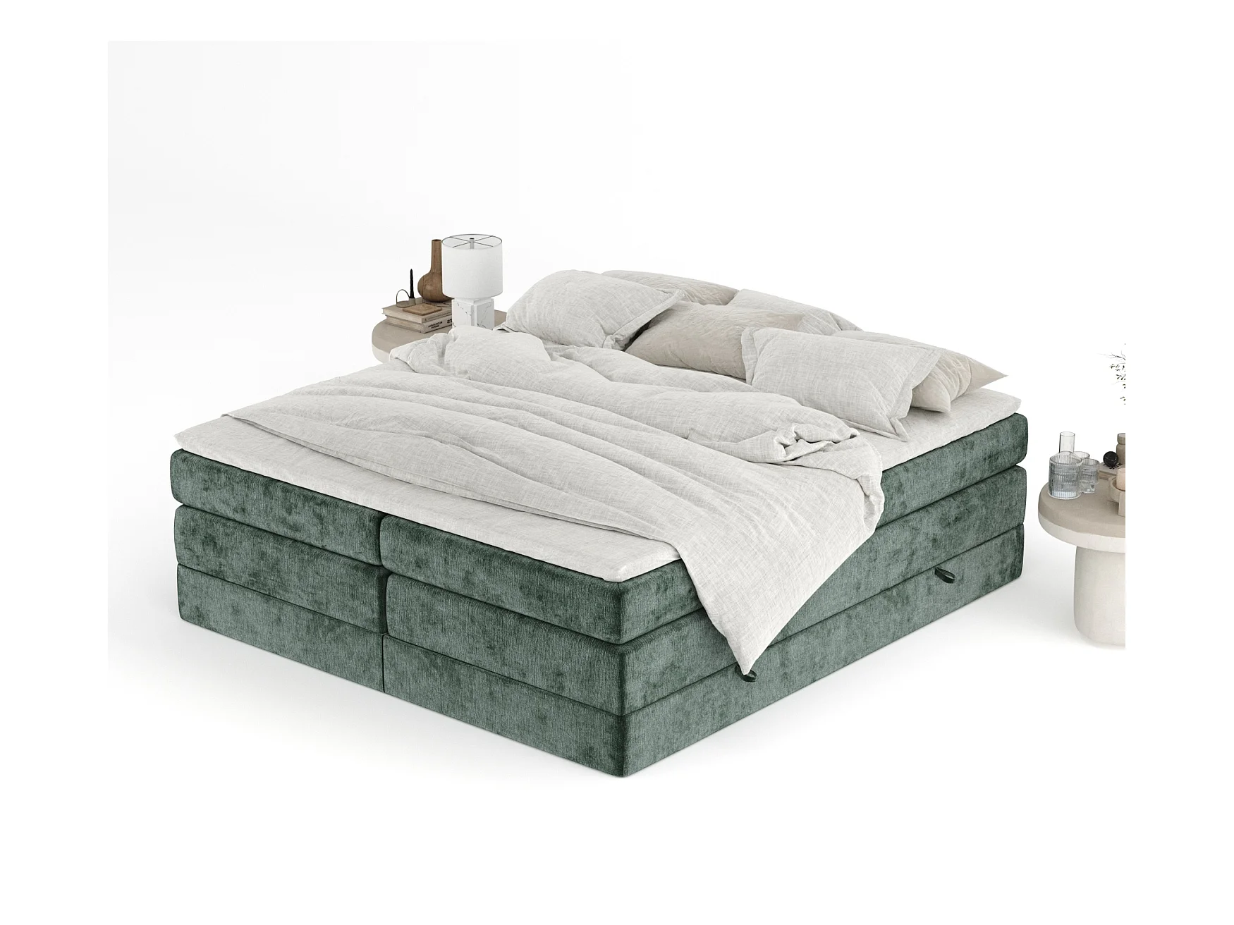 Lit boxspring en tissu chenille Juniper - matelas - surmatelas - 160x200 cm - vert