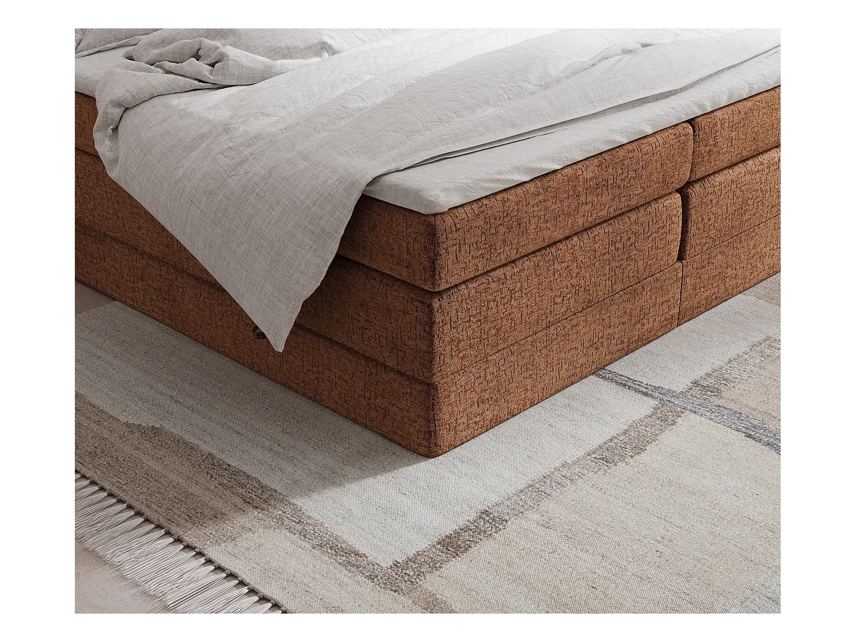 Lit boxspring en tissu chenille Juniper - matelas - surmatelas - 180x200 cm - couleur cuivre