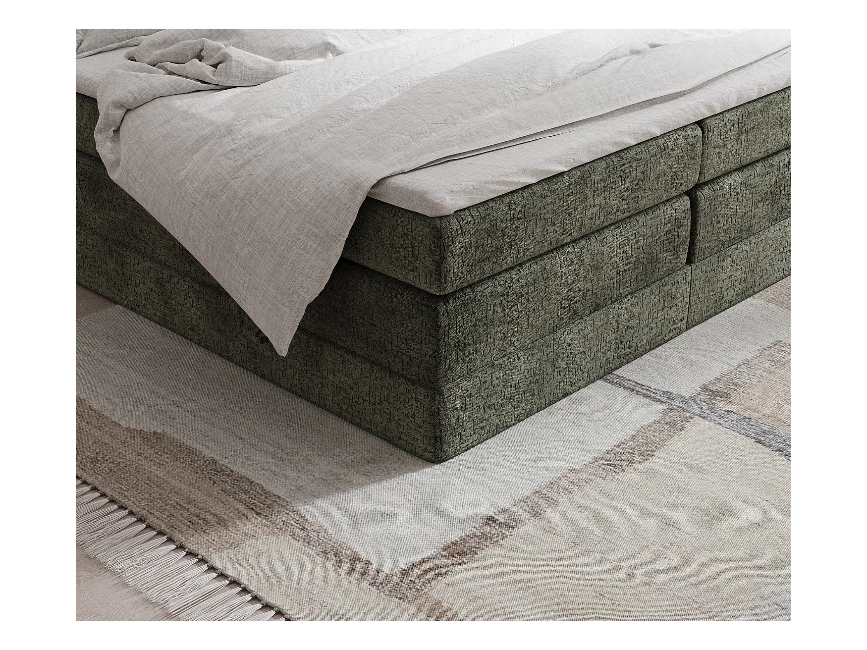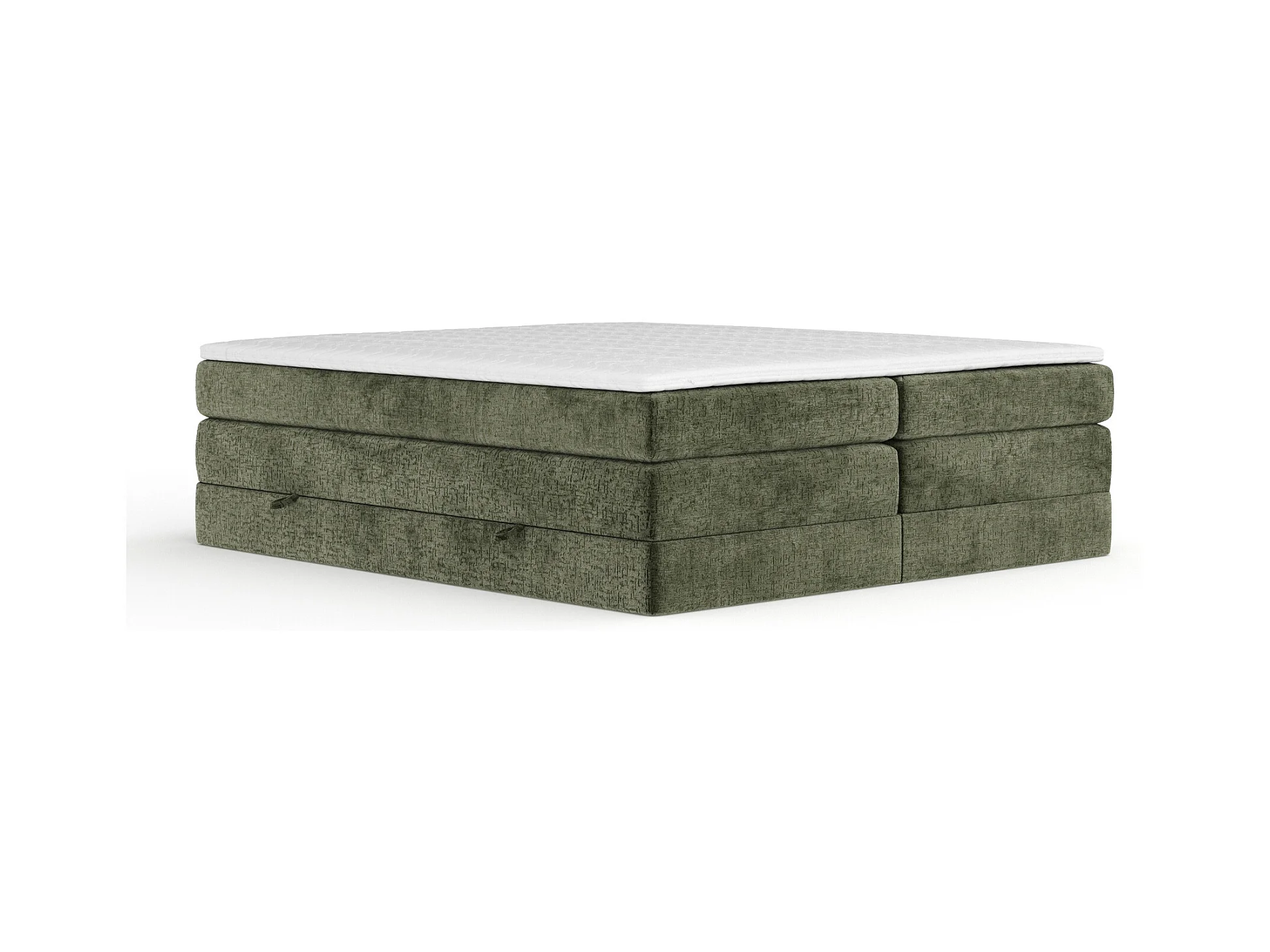 Lit boxspring en tissu chenille Juniper - matelas - surmatelas - 200x200 cm - vert olive