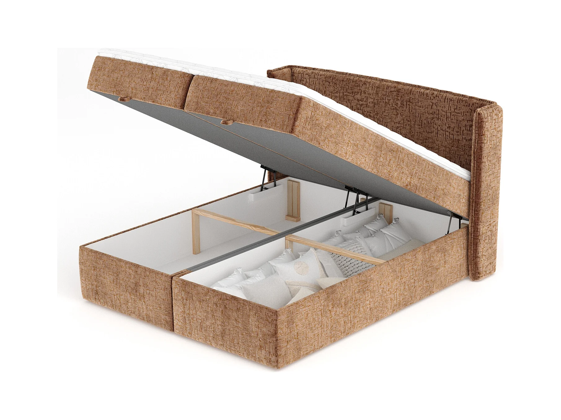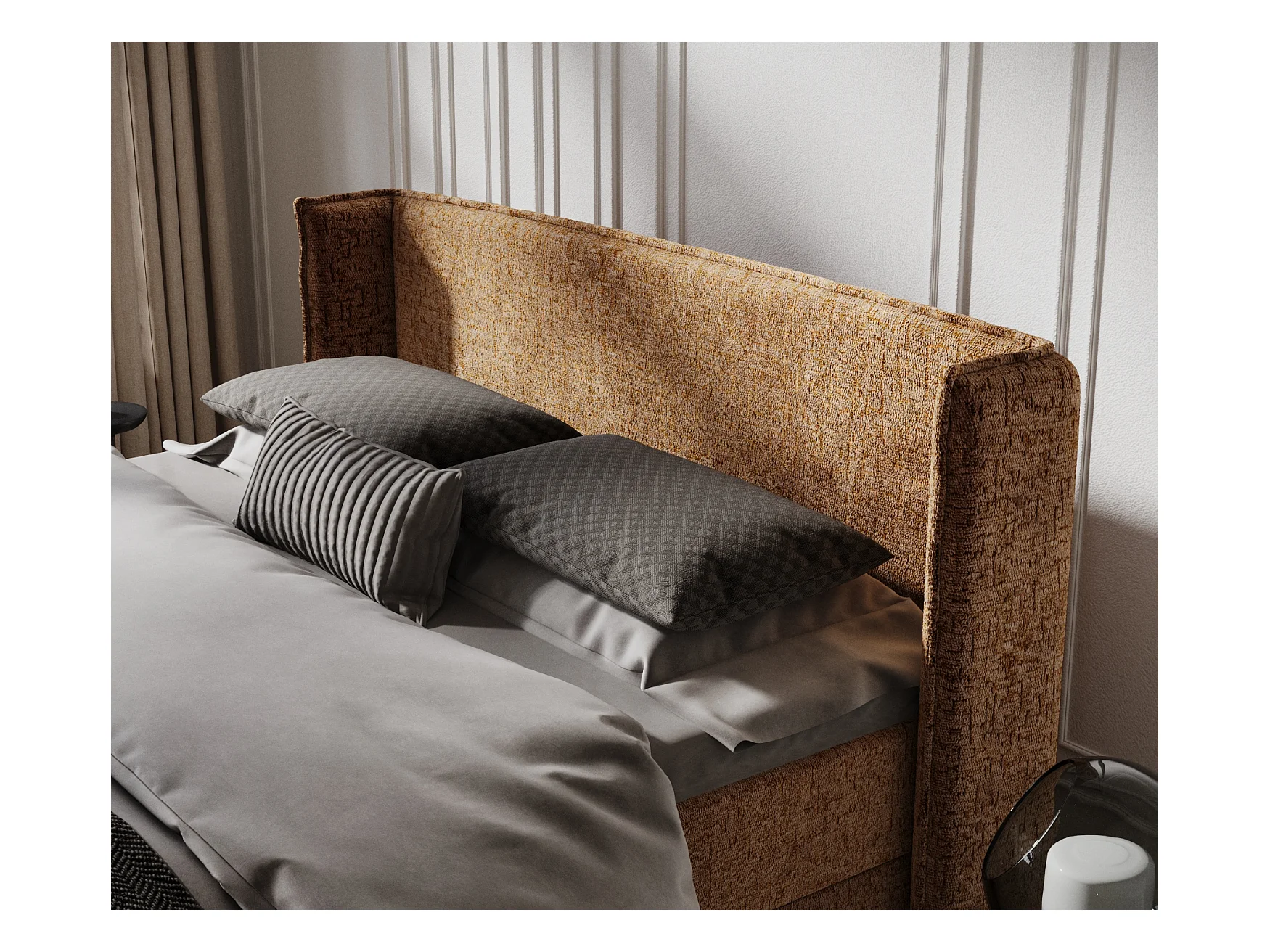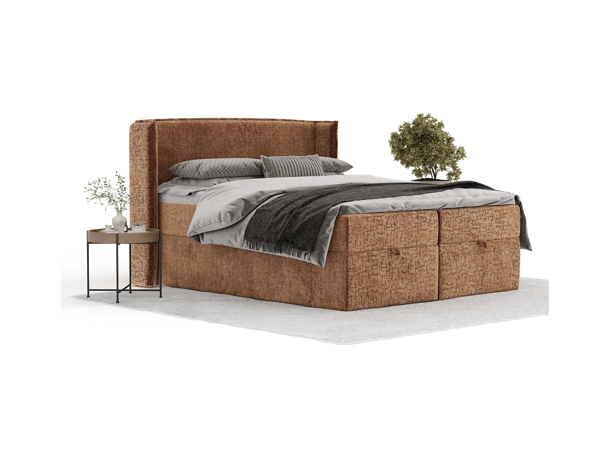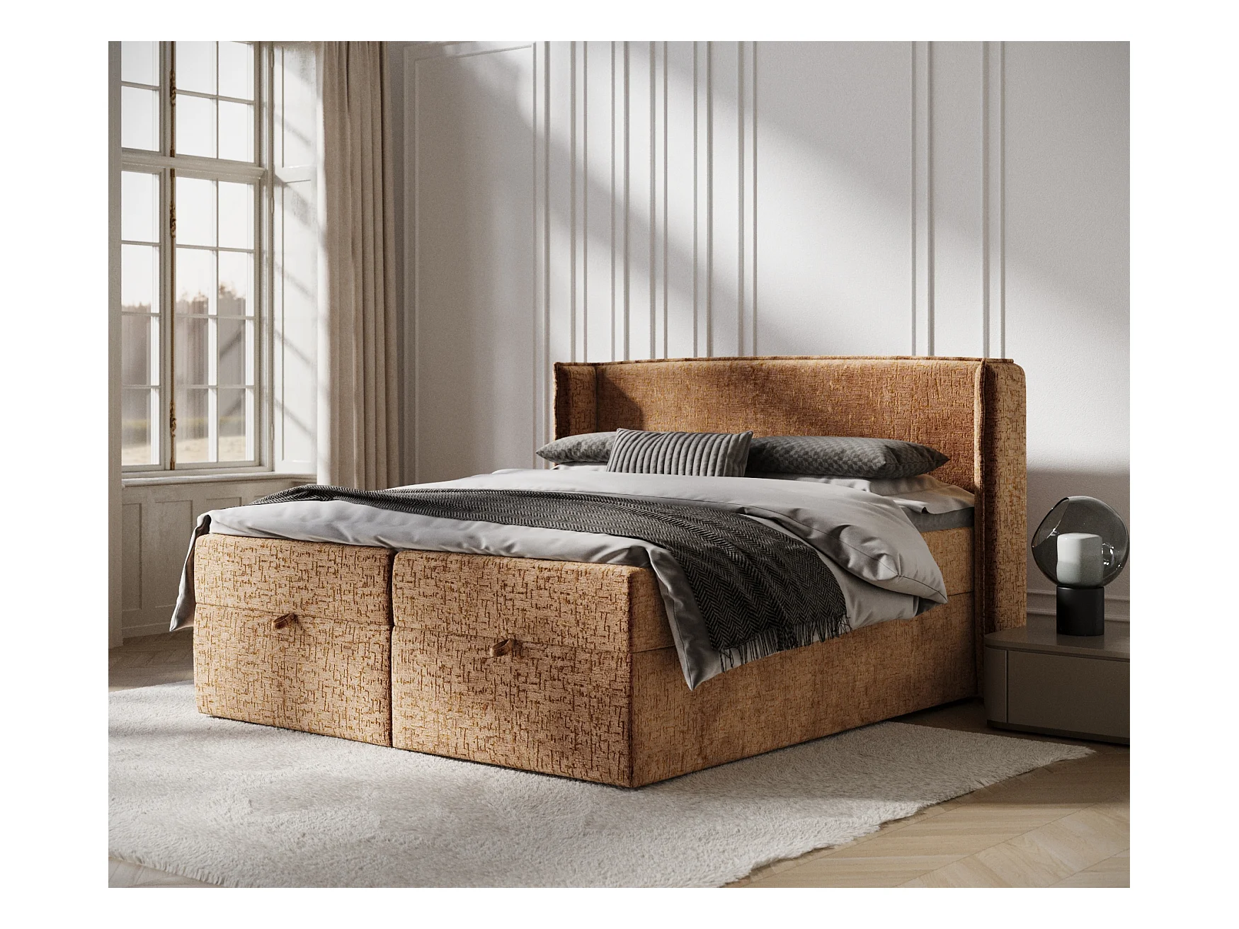 Lit boxspring en tissu chenille Passion - matelas - surmatelas - 160x200 cm - couleur cuivre