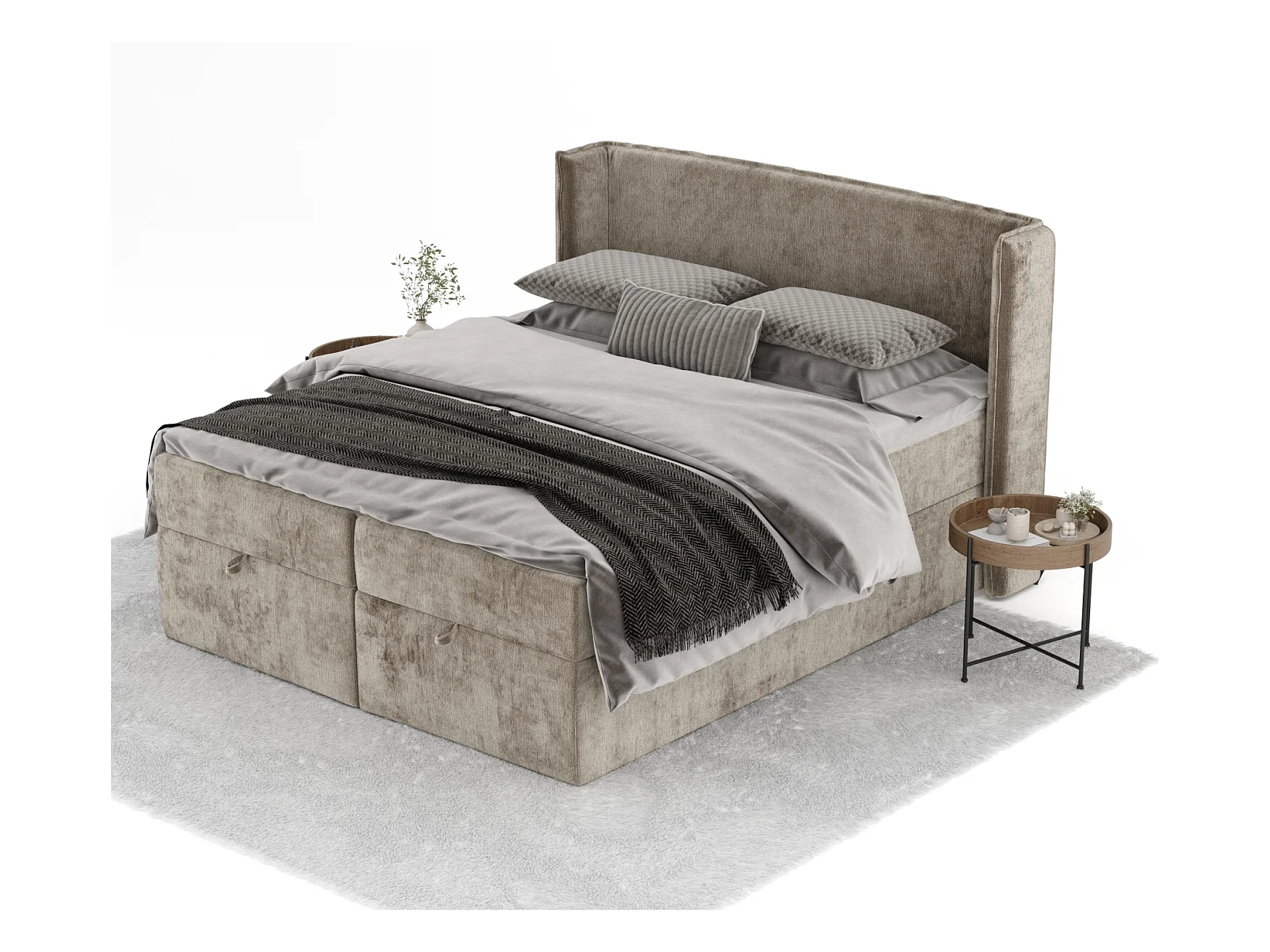 Lit boxspring en tissu chenille Passion - matelas - surmatelas - 180x200 cm - beige