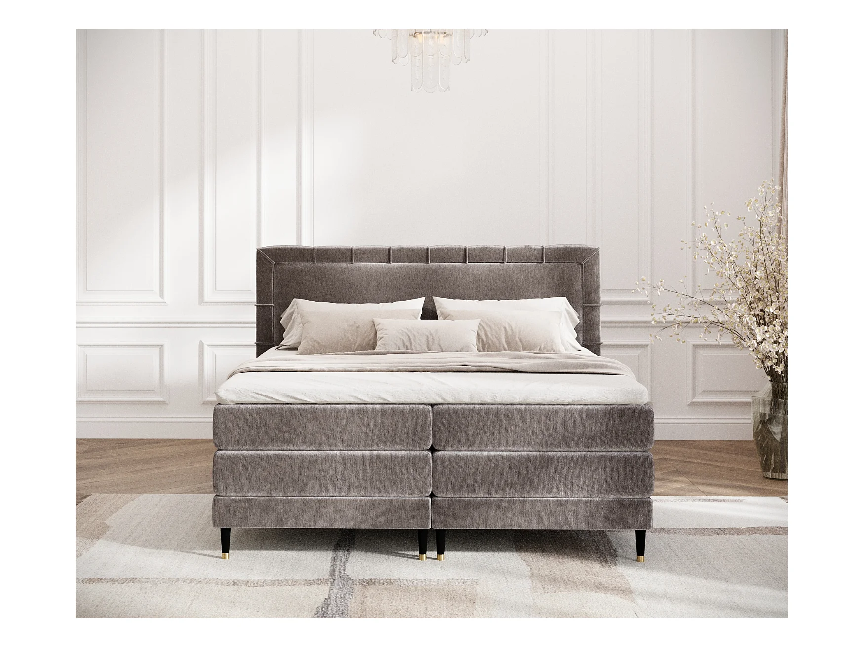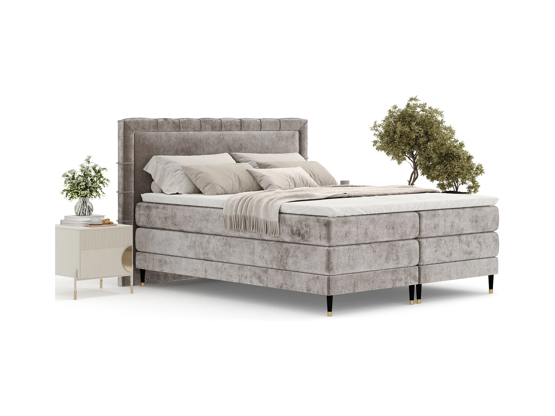 Lit boxspring en tissu chenille Rimini - matelas - surmatelas - 180x200 cm - beige