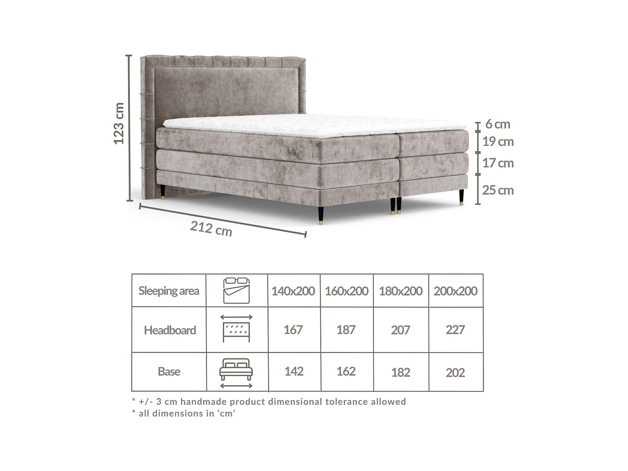 Lit boxspring en tissu chenille Rimini - matelas - surmatelas - 200x200 cm - brun
