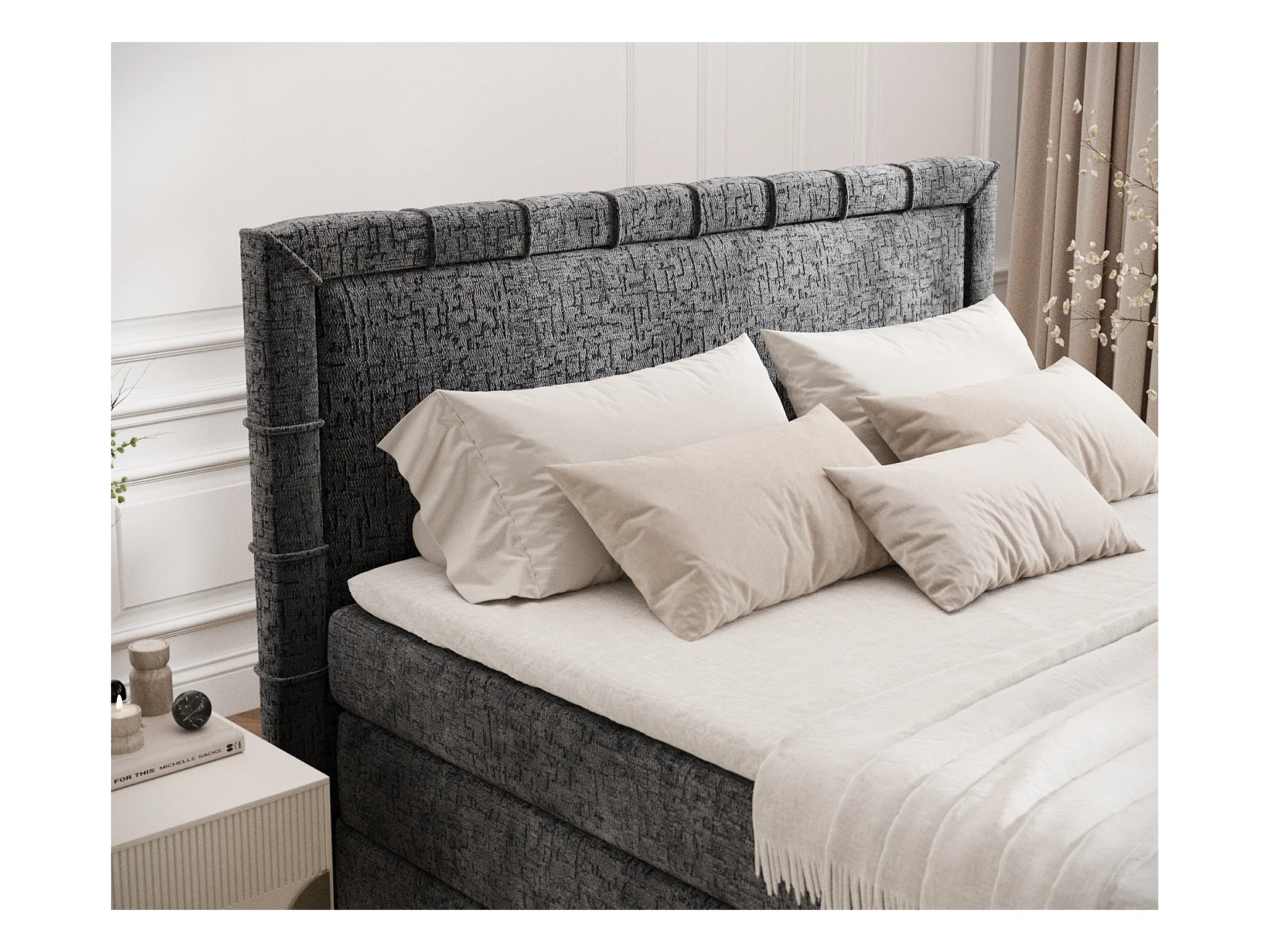Lit boxspring en tissu chenille Rosabel - matelas - surmatelas - 160x200 cm - anthracite