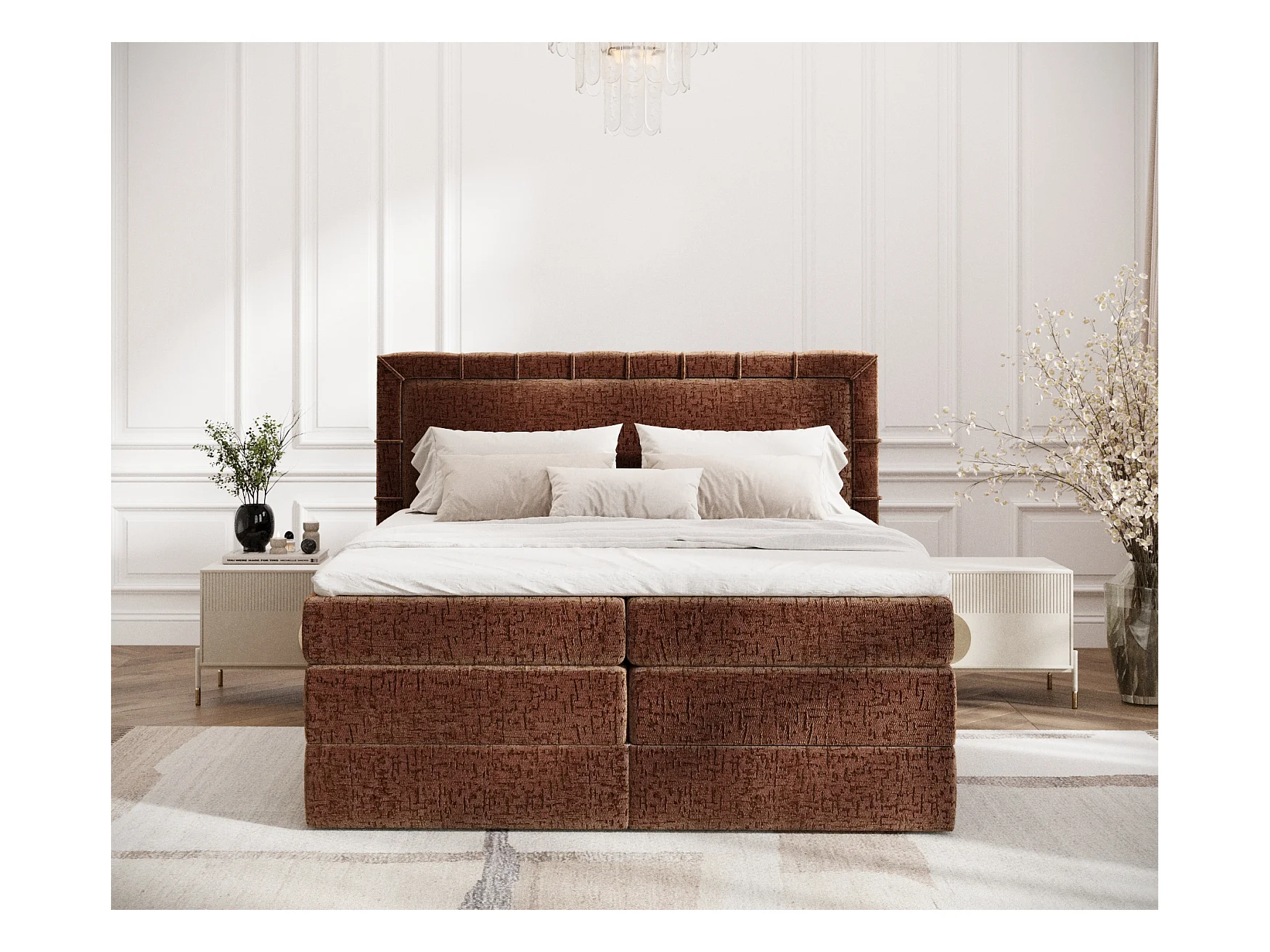 Lit boxspring en tissu chenille Rosabel - matelas - surmatelas - 160x200 cm - couleur cuivre