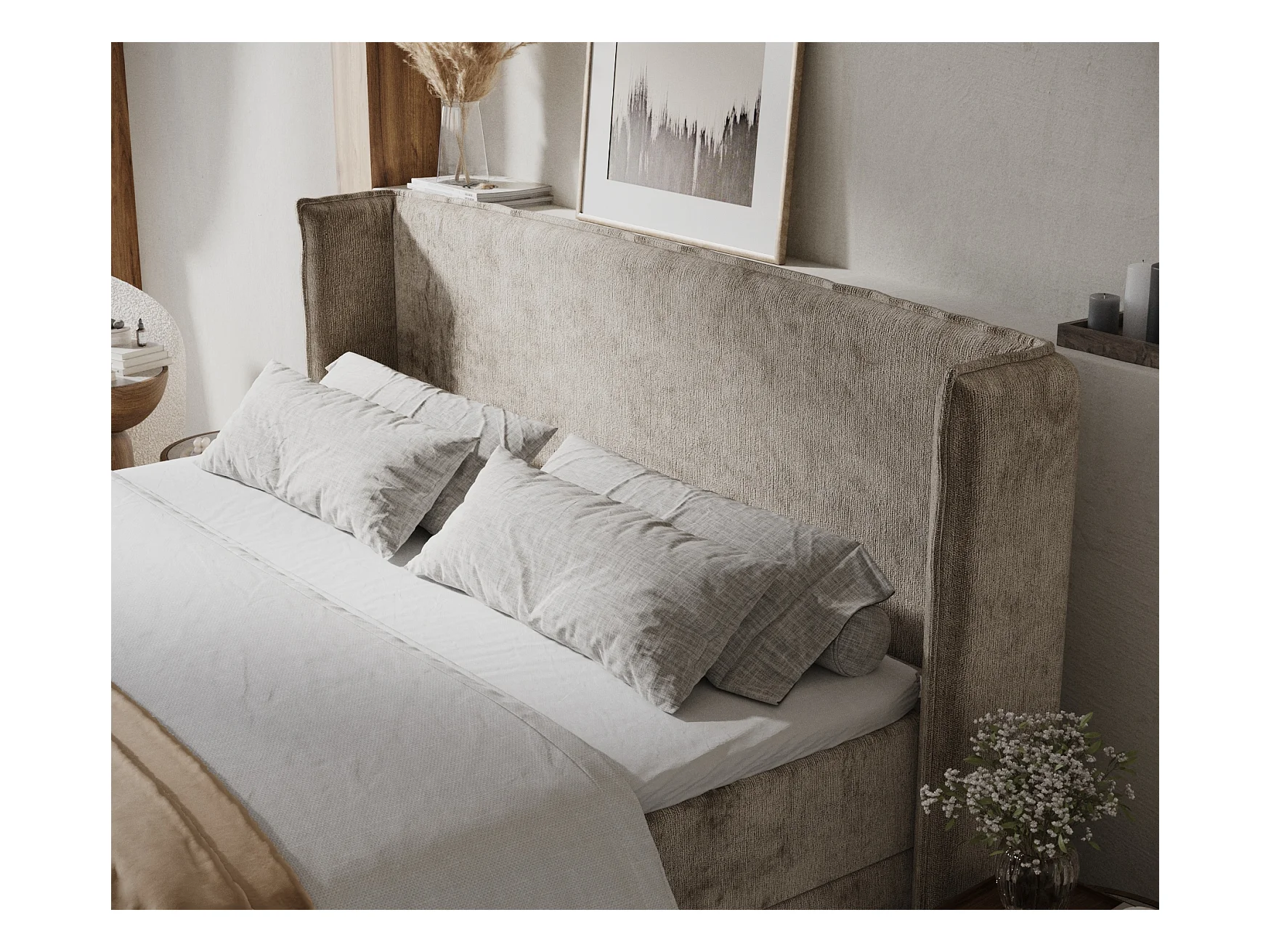 Lit boxspring en tissu chenille Skyline - matelas - surmatelas - 140x200 cm - beige