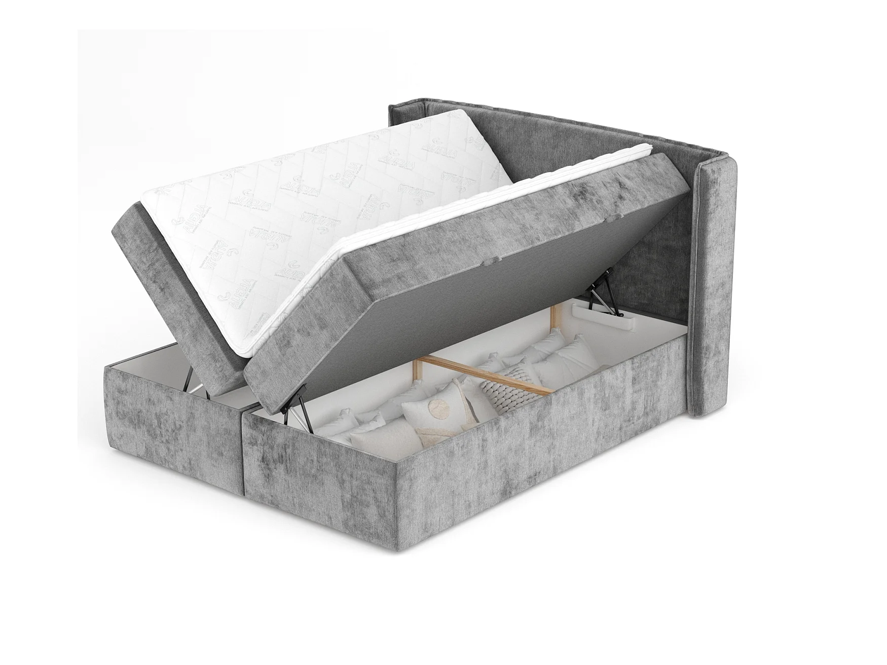 Lit boxspring en tissu chenille Skyline - matelas - surmatelas - 160x200 cm - gris