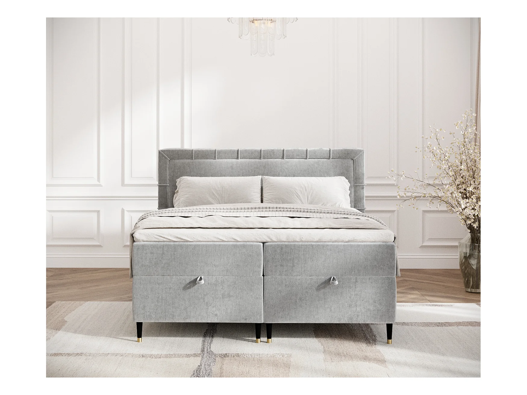 Lit boxspring en tissu chenille Voyage - matelas - surmatelas - 180x200 cm - gris clair