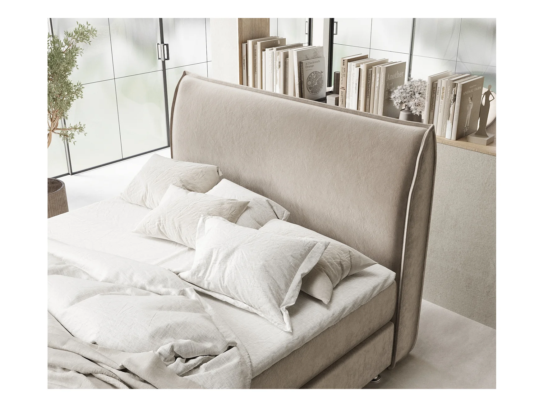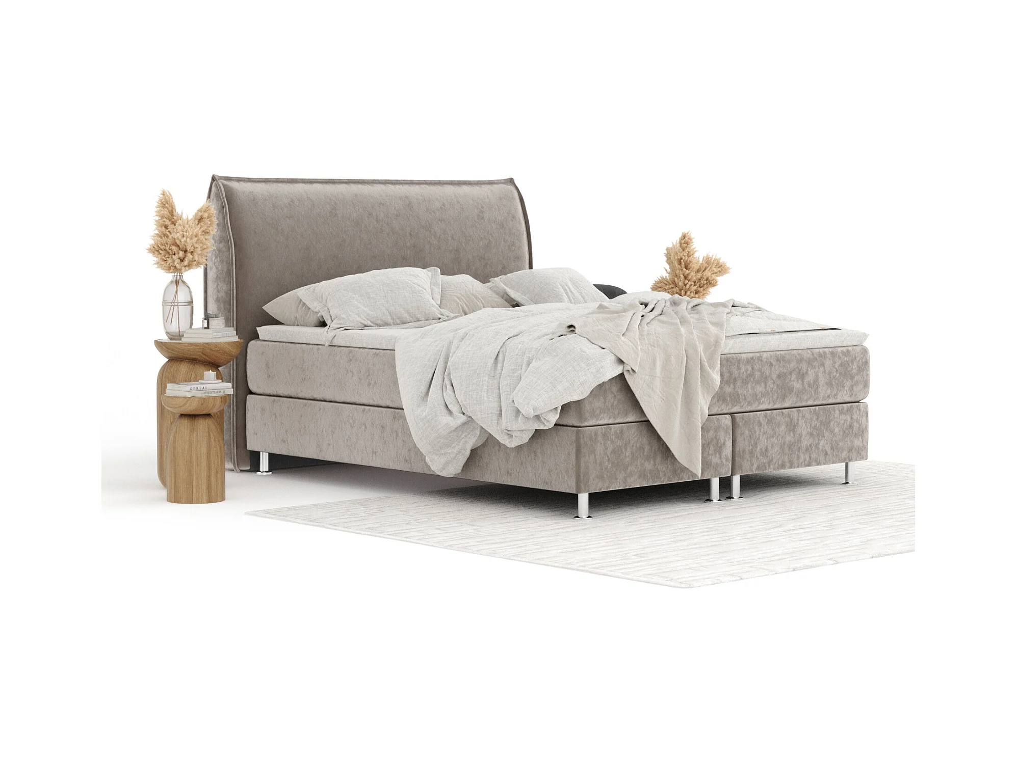 Lit boxspring en tissu velours Chermin - matelas - surmatelas - 140x200 cm - taupe