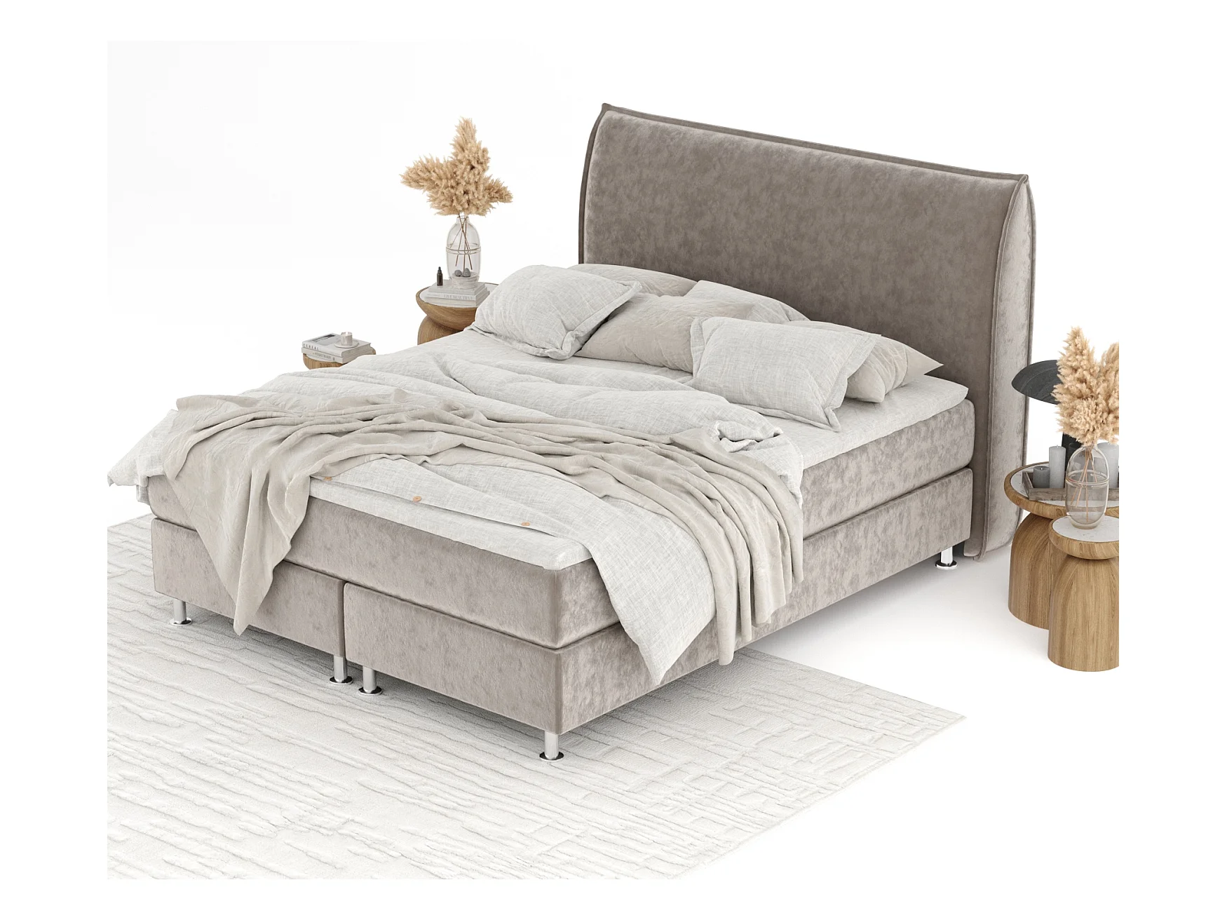 Lit boxspring en tissu velours Chermin - matelas - surmatelas - 180x200 cm - taupe
