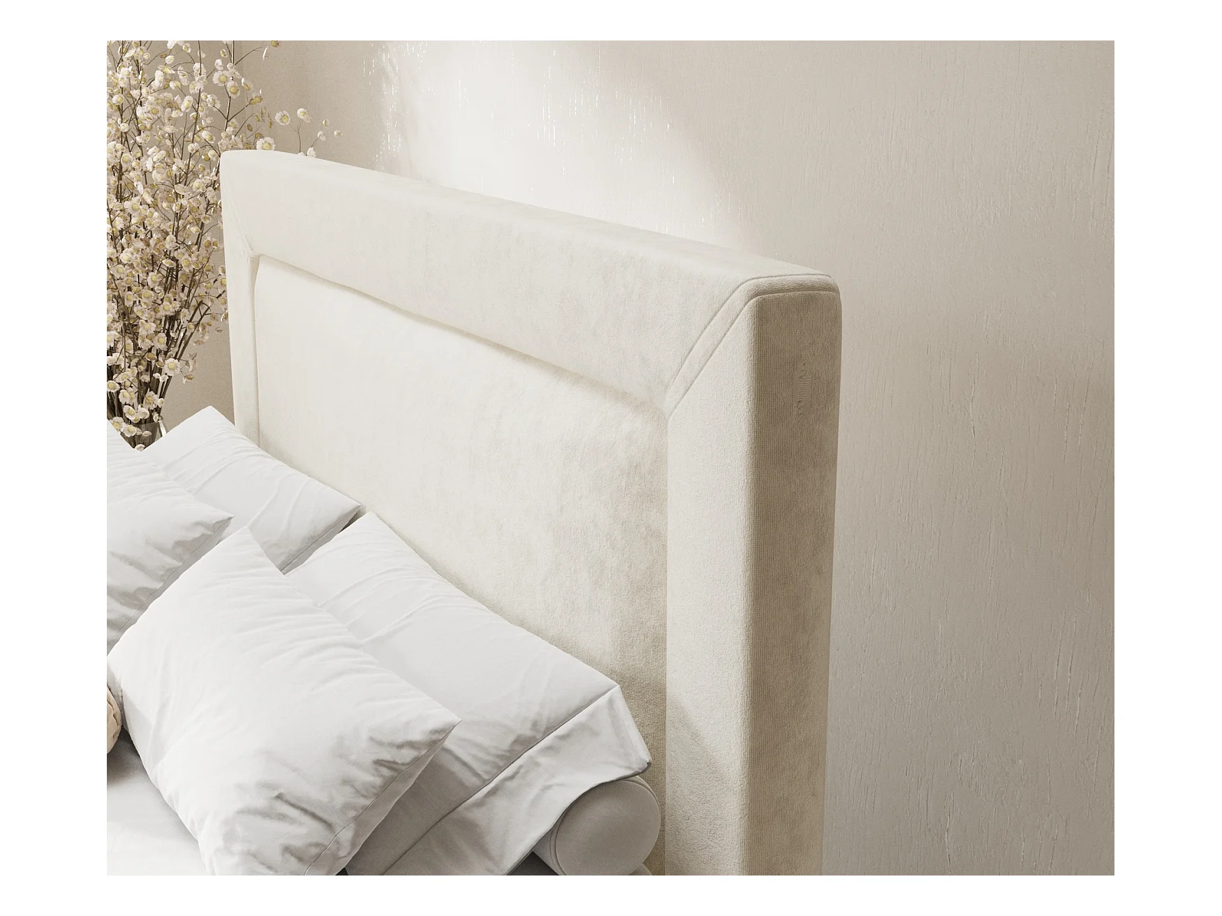 Lit boxspring en tissu velours Laguno - matelas - surmatelas - 180x200 cm - creme