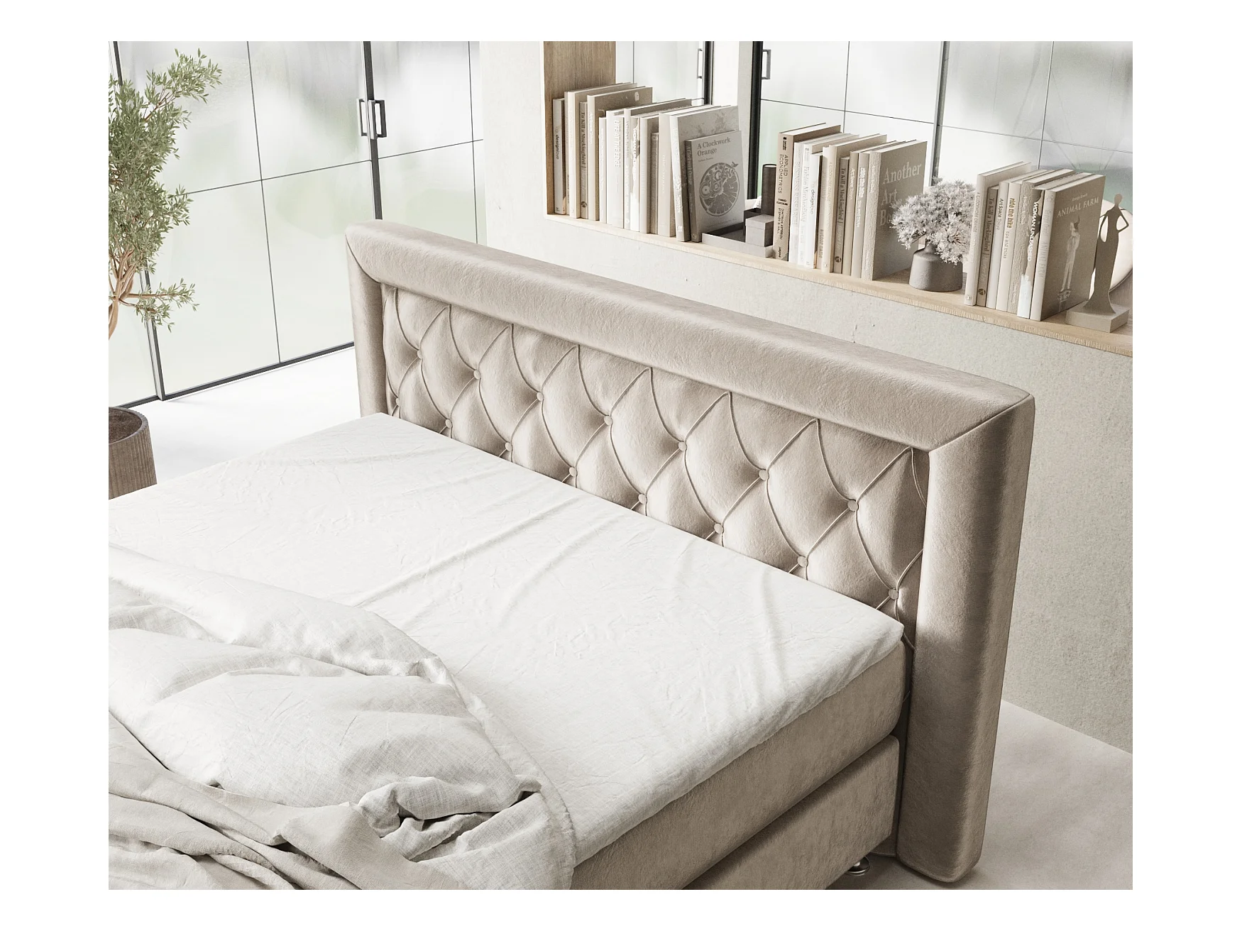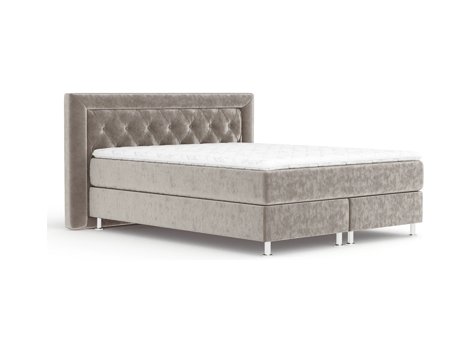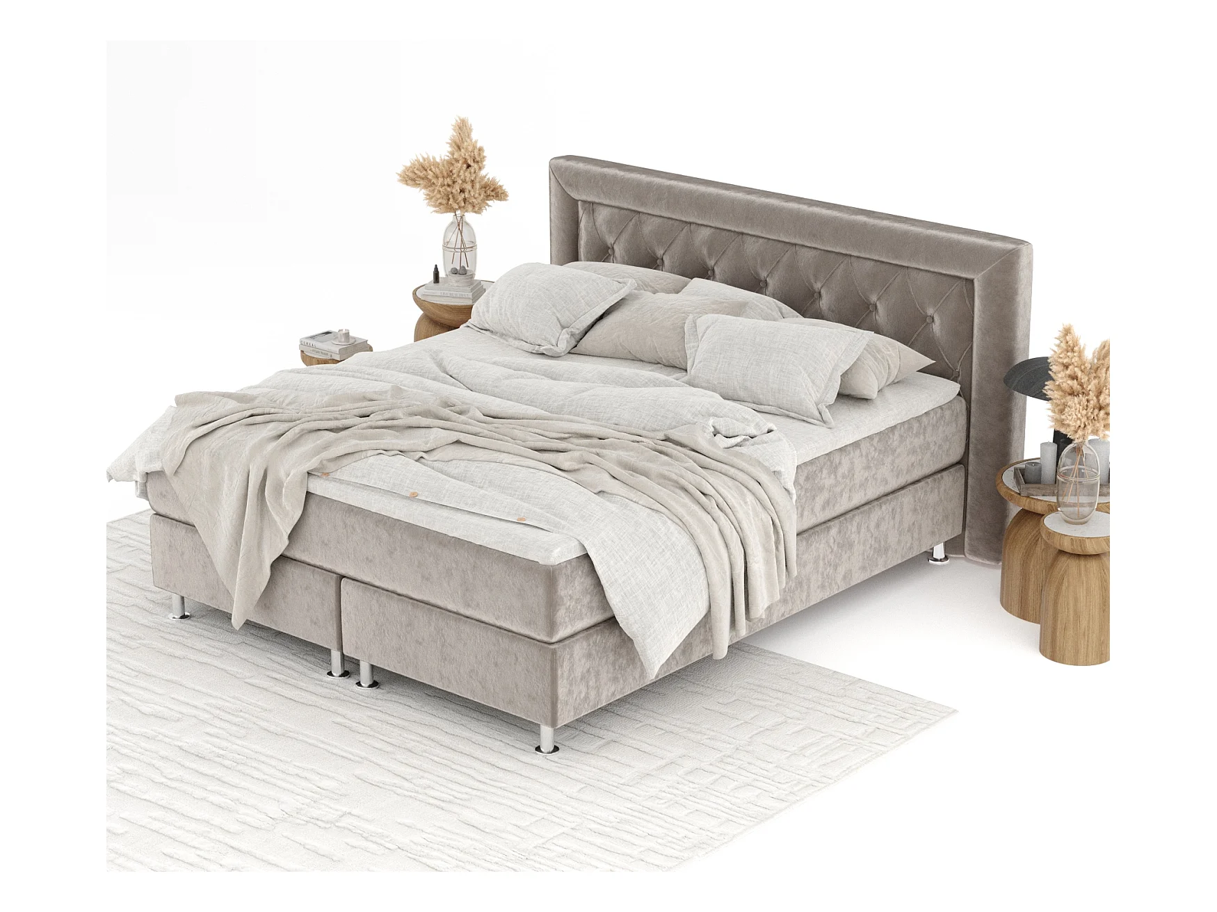Lit boxspring en tissu velours Lavello - matelas - surmatelas - 140x200 cm - taupe