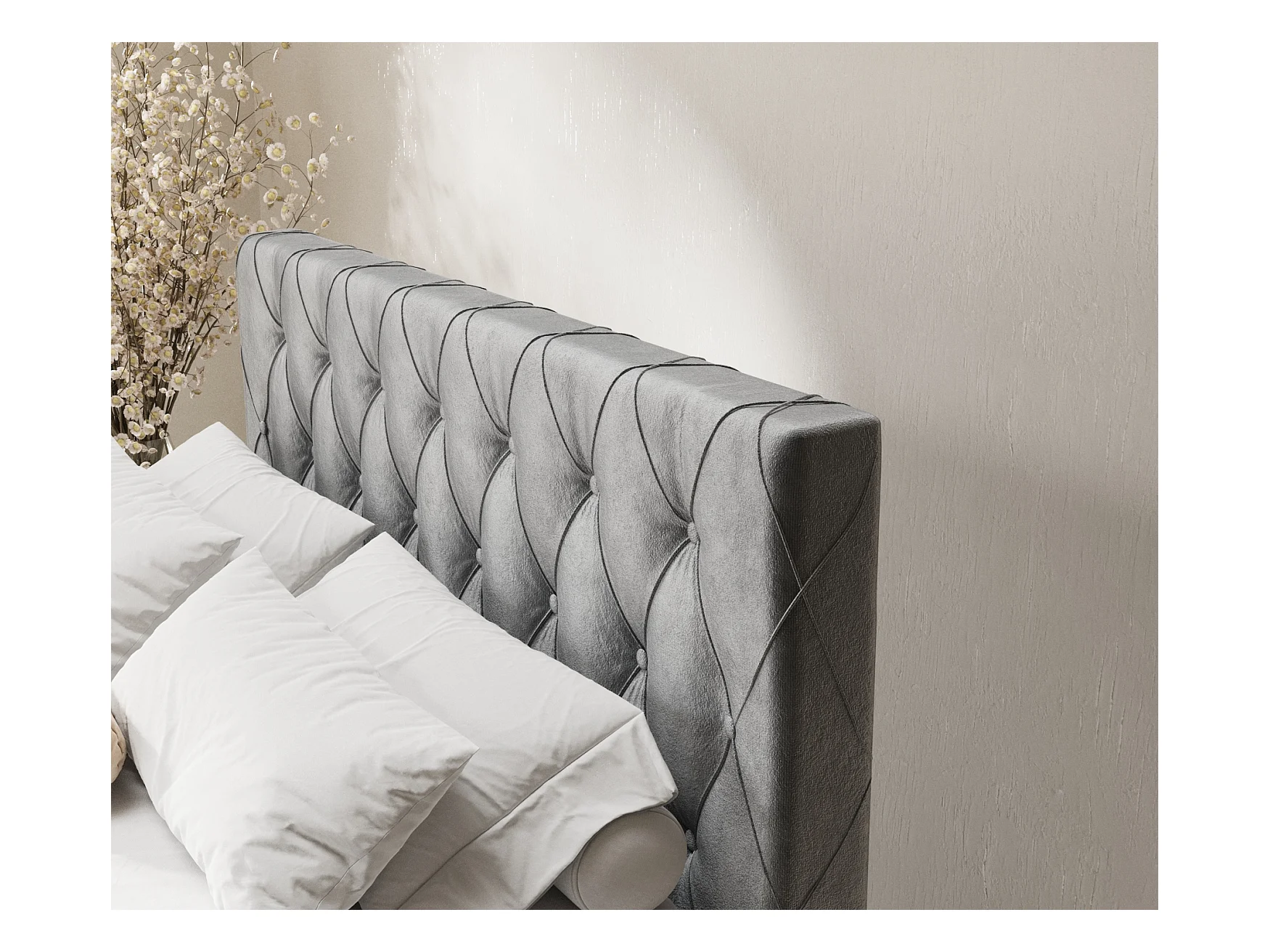 Lit boxspring en tissu velours Otus - matelas - surmatelas - 200x200 cm - gris