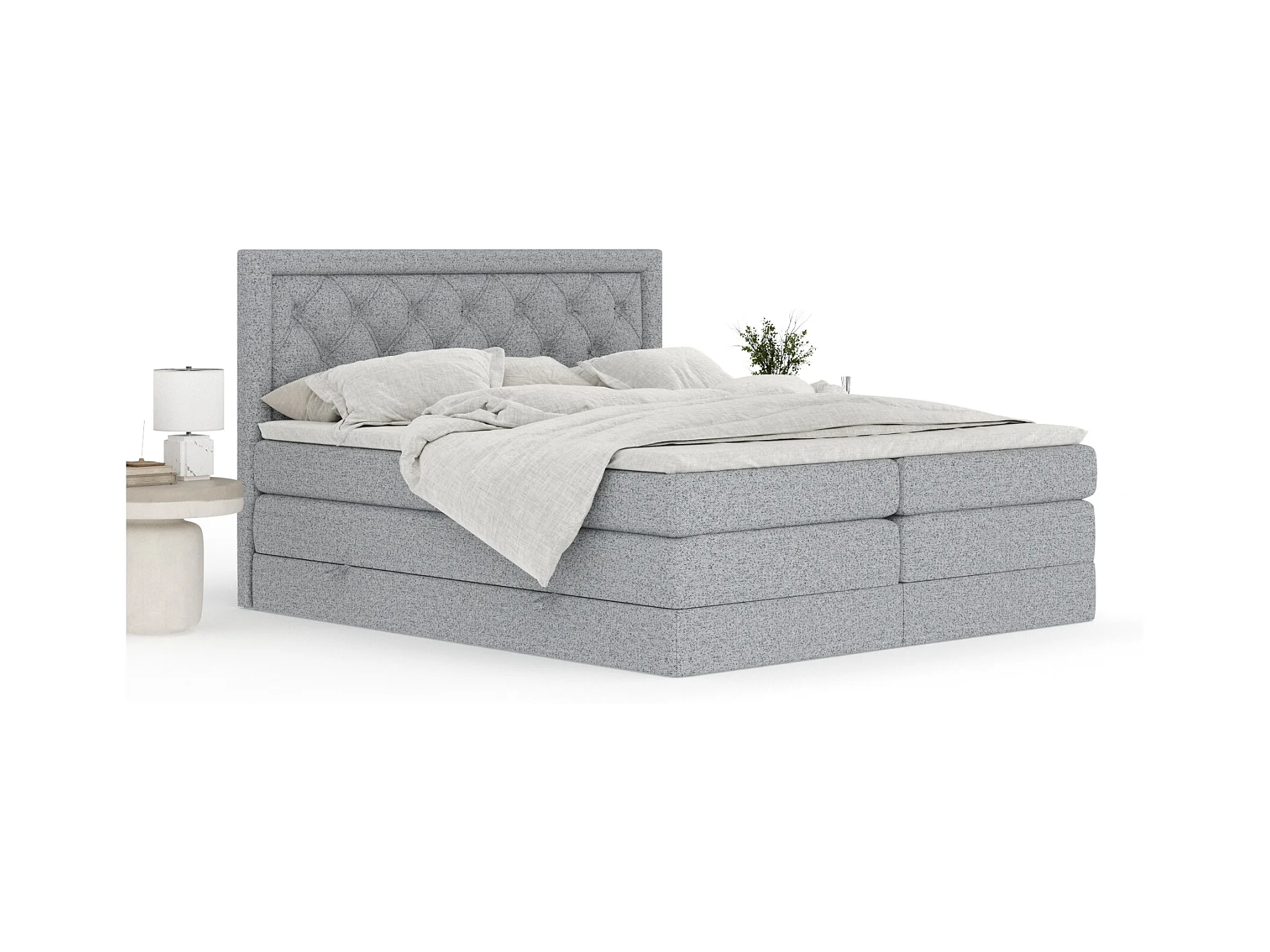 Lit boxspring en toile tissée Aurelia - matelas - surmatelas - 180x200 cm - gris