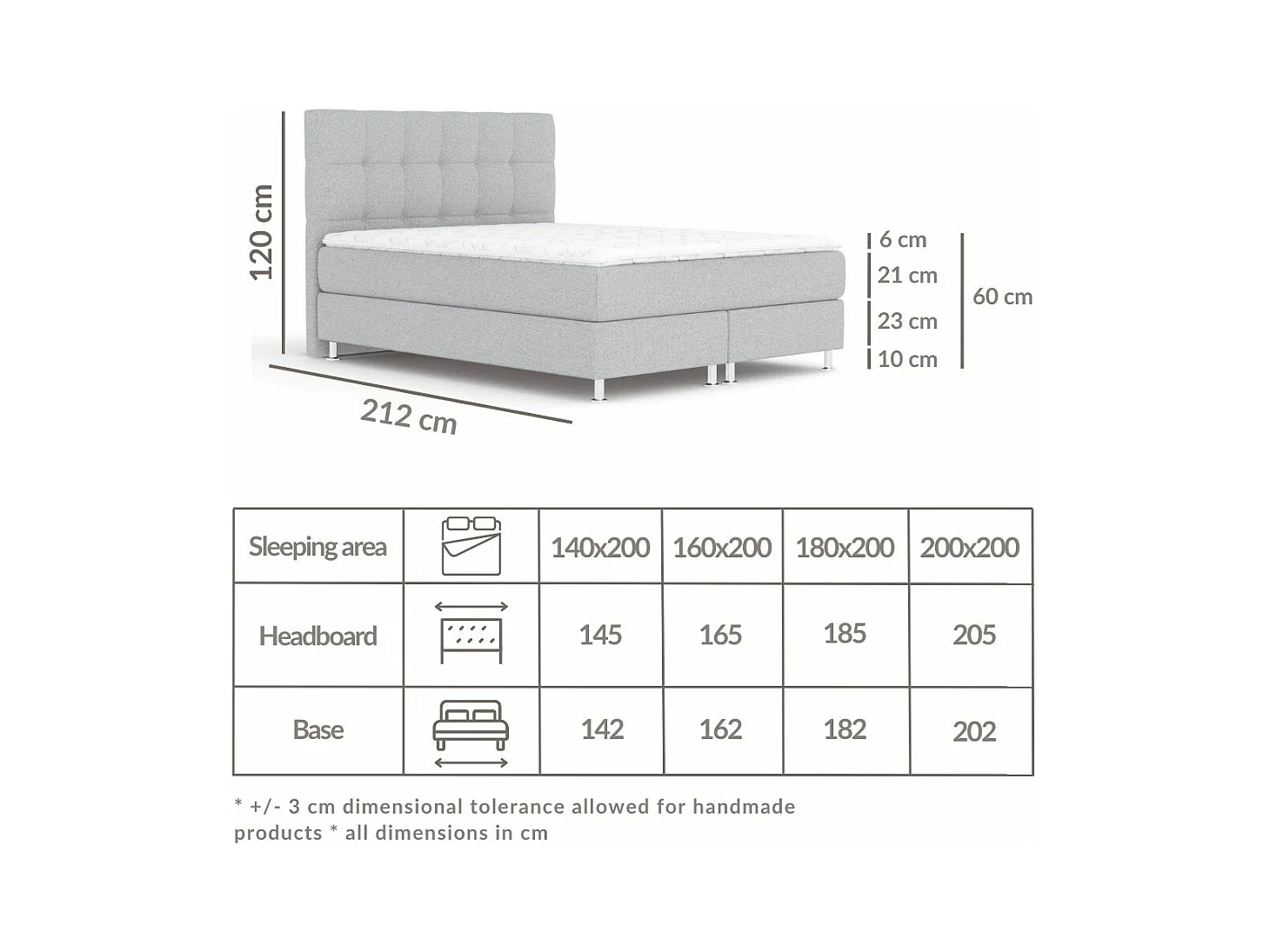 Lit boxspring en toile tissée Chanton - matelas - surmatelas - 180x200 cm - gris clair
