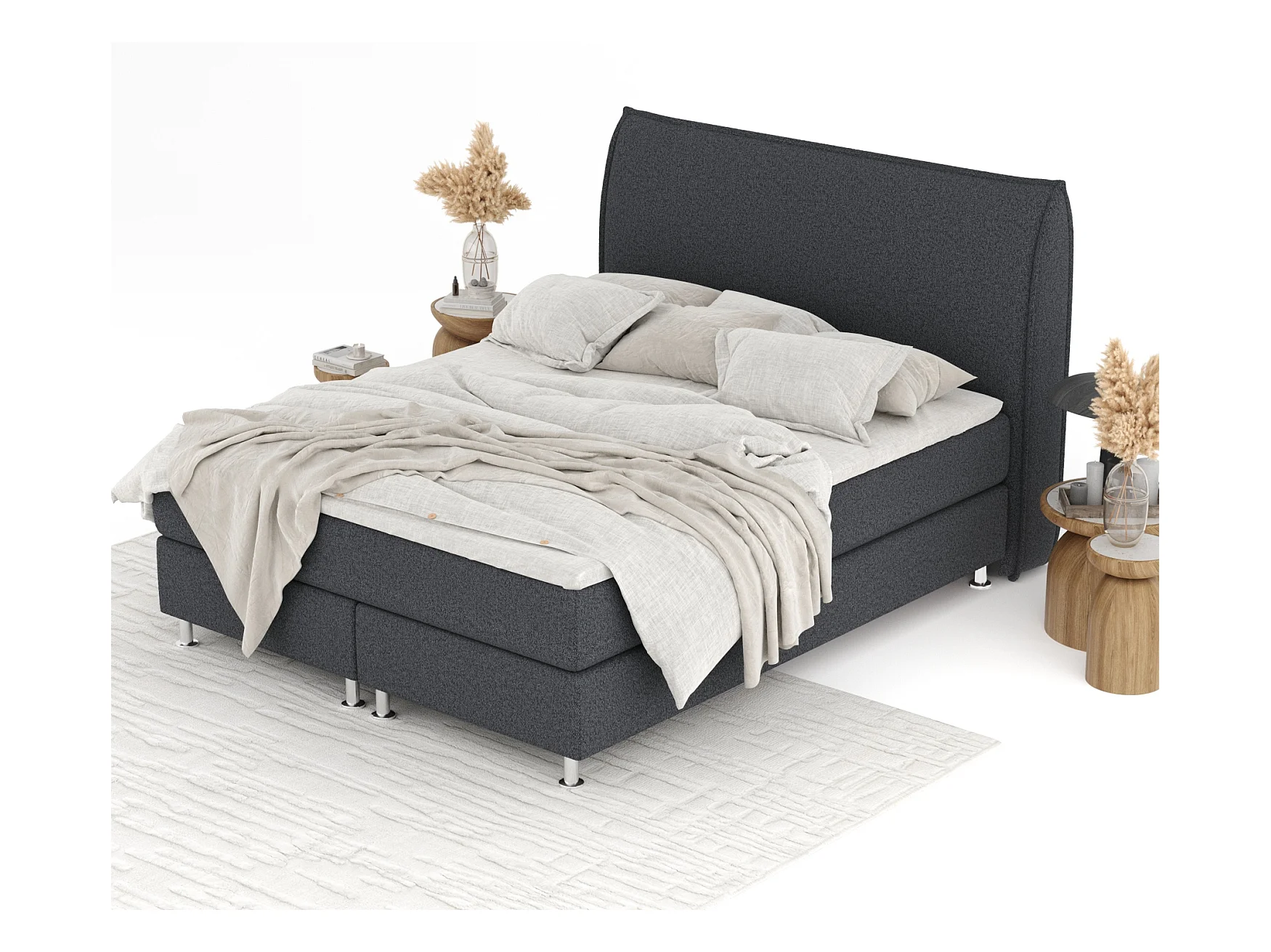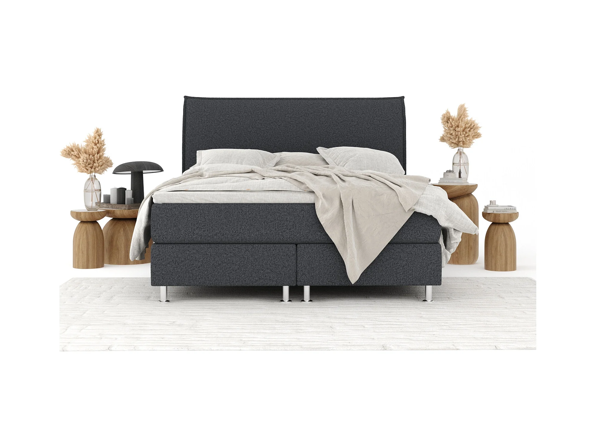 Lit boxspring en toile tissée Chermin - matelas - surmatelas - 140x200 cm - noir