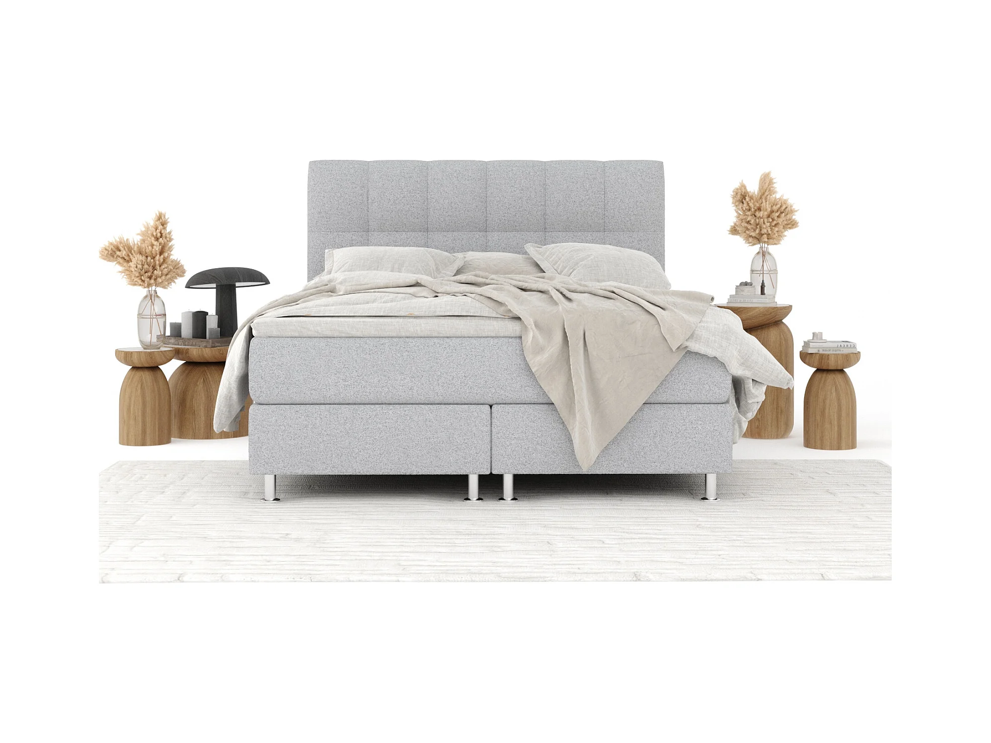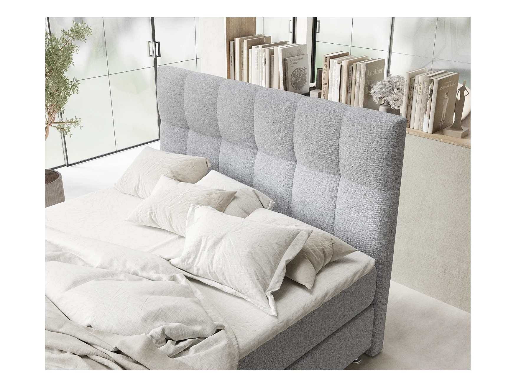 Lit boxspring en toile tissée Elisio - matelas - surmatelas - 160x200 cm - gris clair