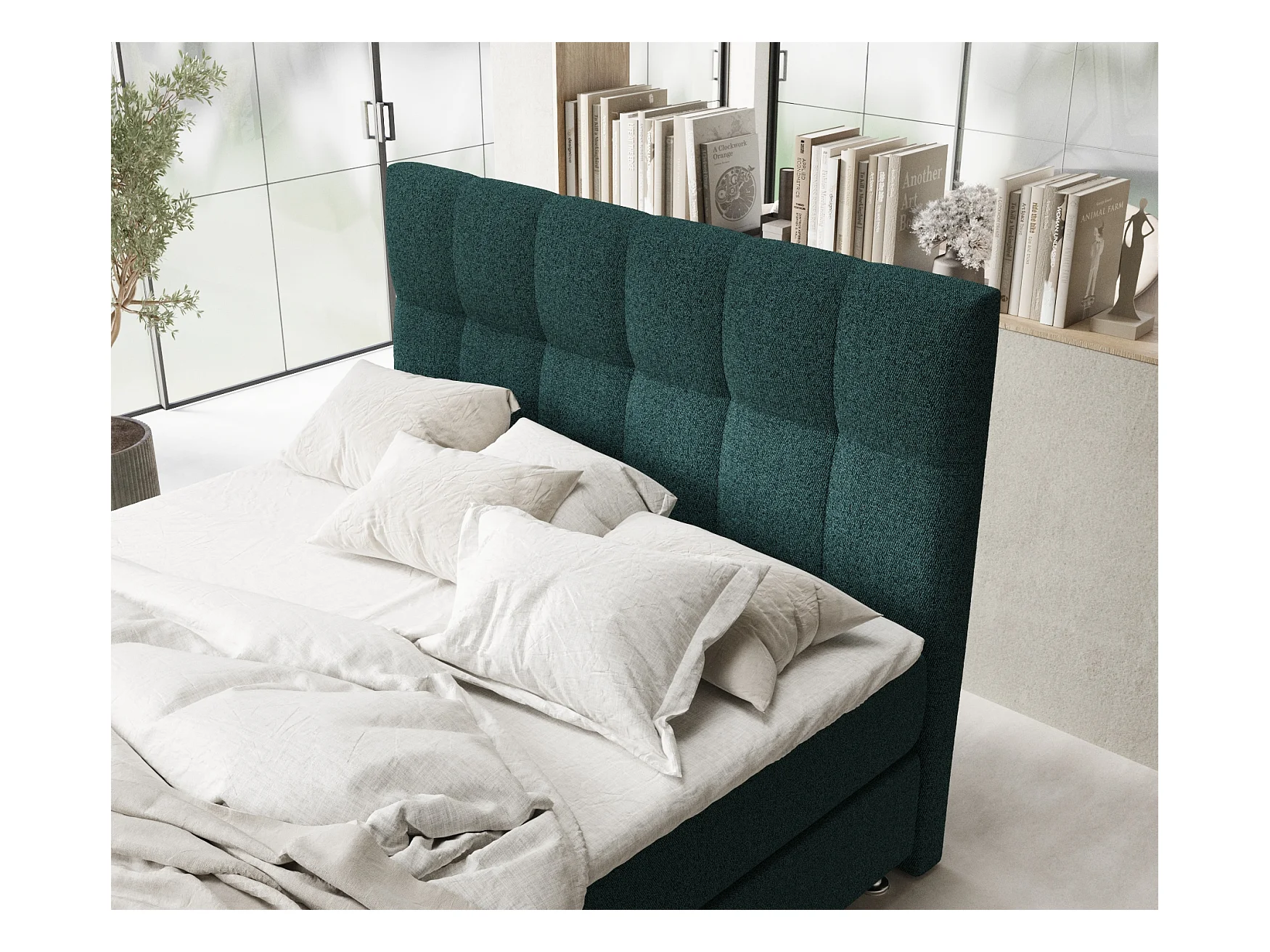Lit boxspring en toile tissée Elisio - matelas - surmatelas - 180x200 cm - vert