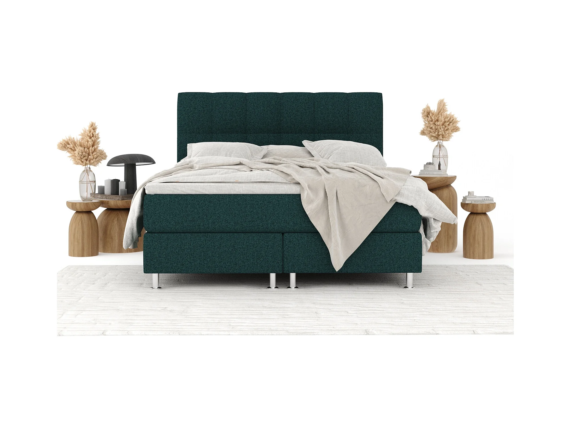 Lit boxspring en toile tissée Elisio - matelas - surmatelas - 200x200 cm - vert