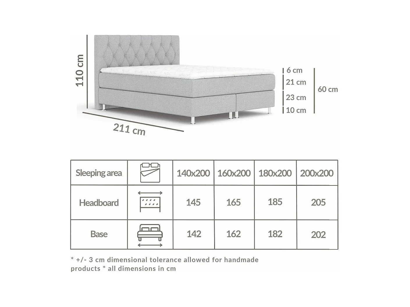 Lit boxspring en toile tissée Excelsior - matelas - surmatelas - 160x200 cm - gris clair