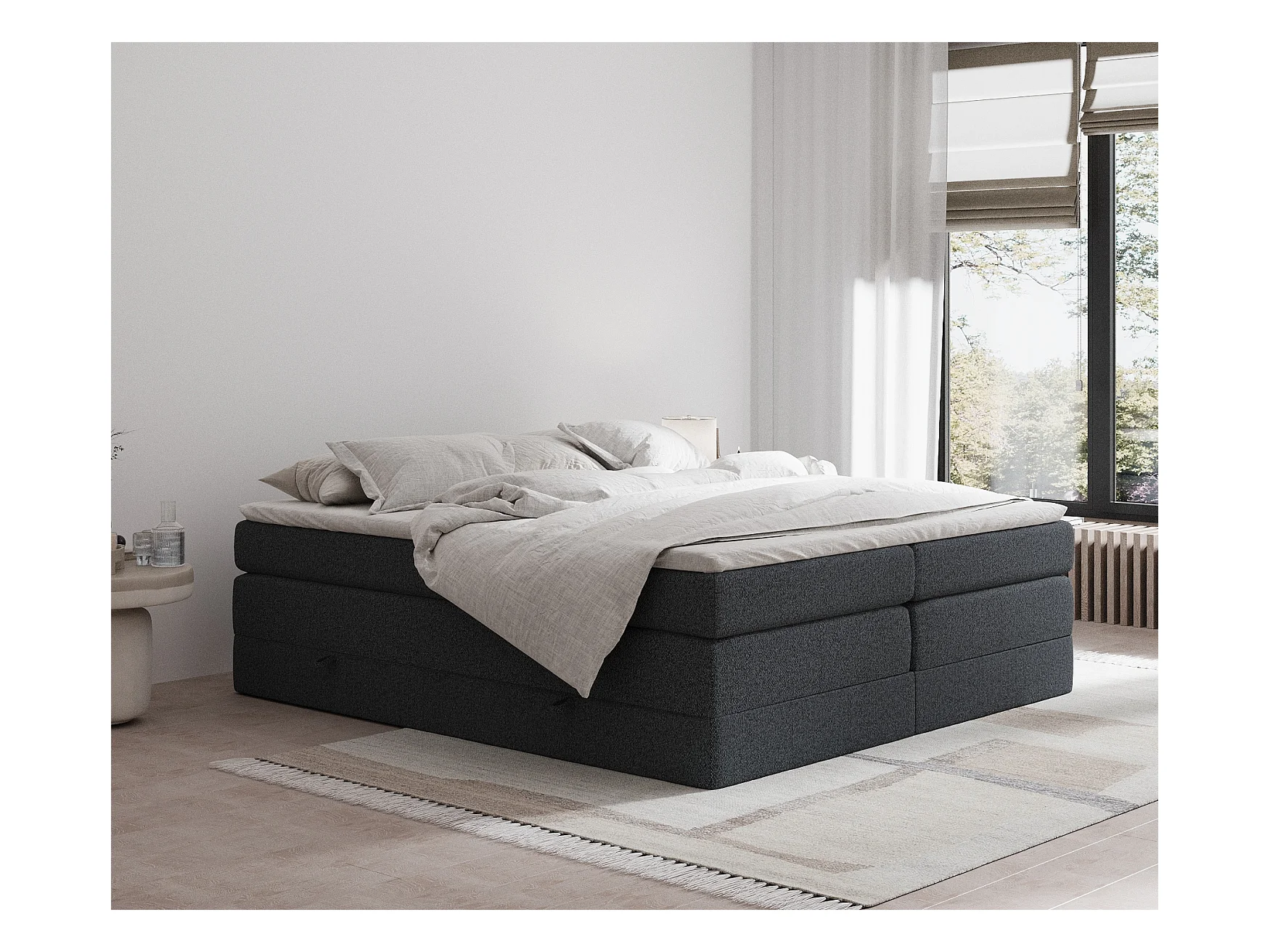 Lit boxspring en toile tissée Juniper - matelas - surmatelas - 140x200 cm - noir