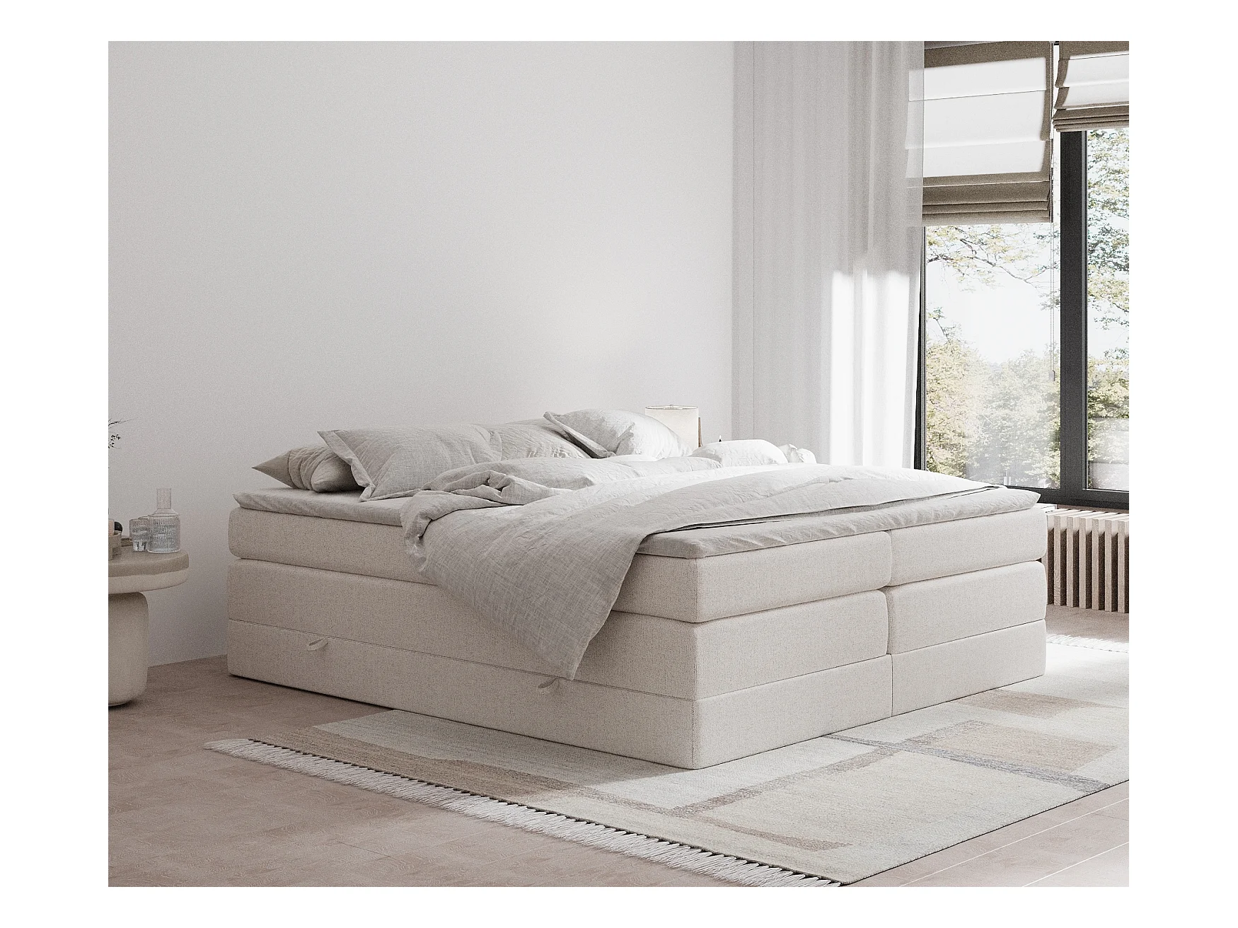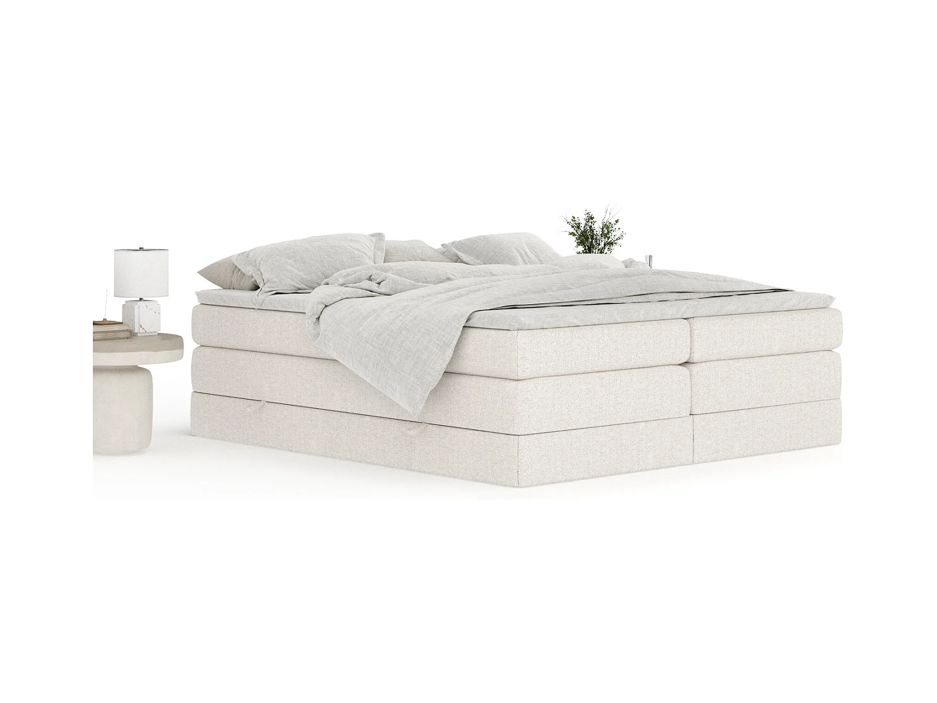 Lit boxspring en toile tissée Juniper - matelas - surmatelas - 200x200 cm - beige