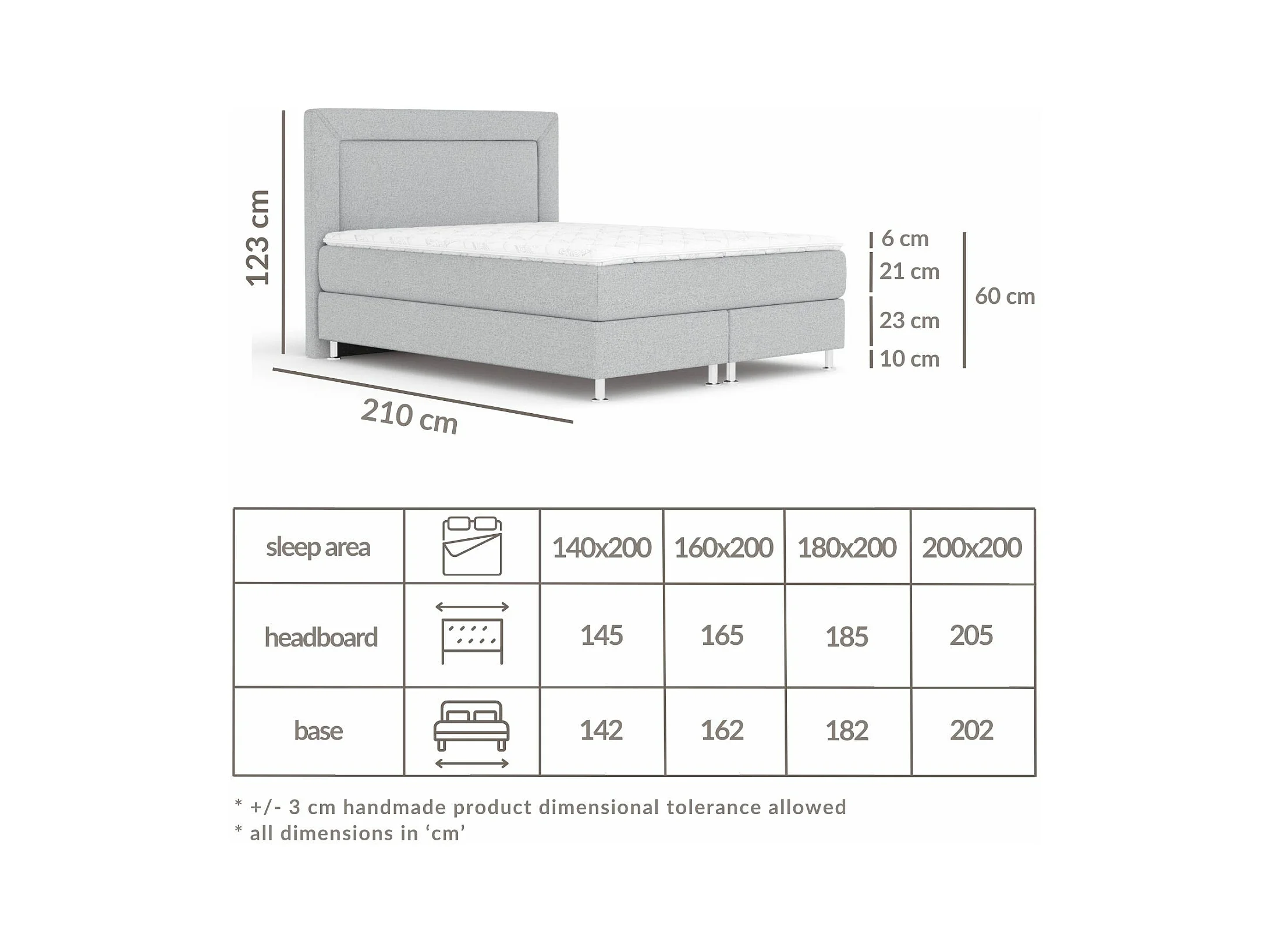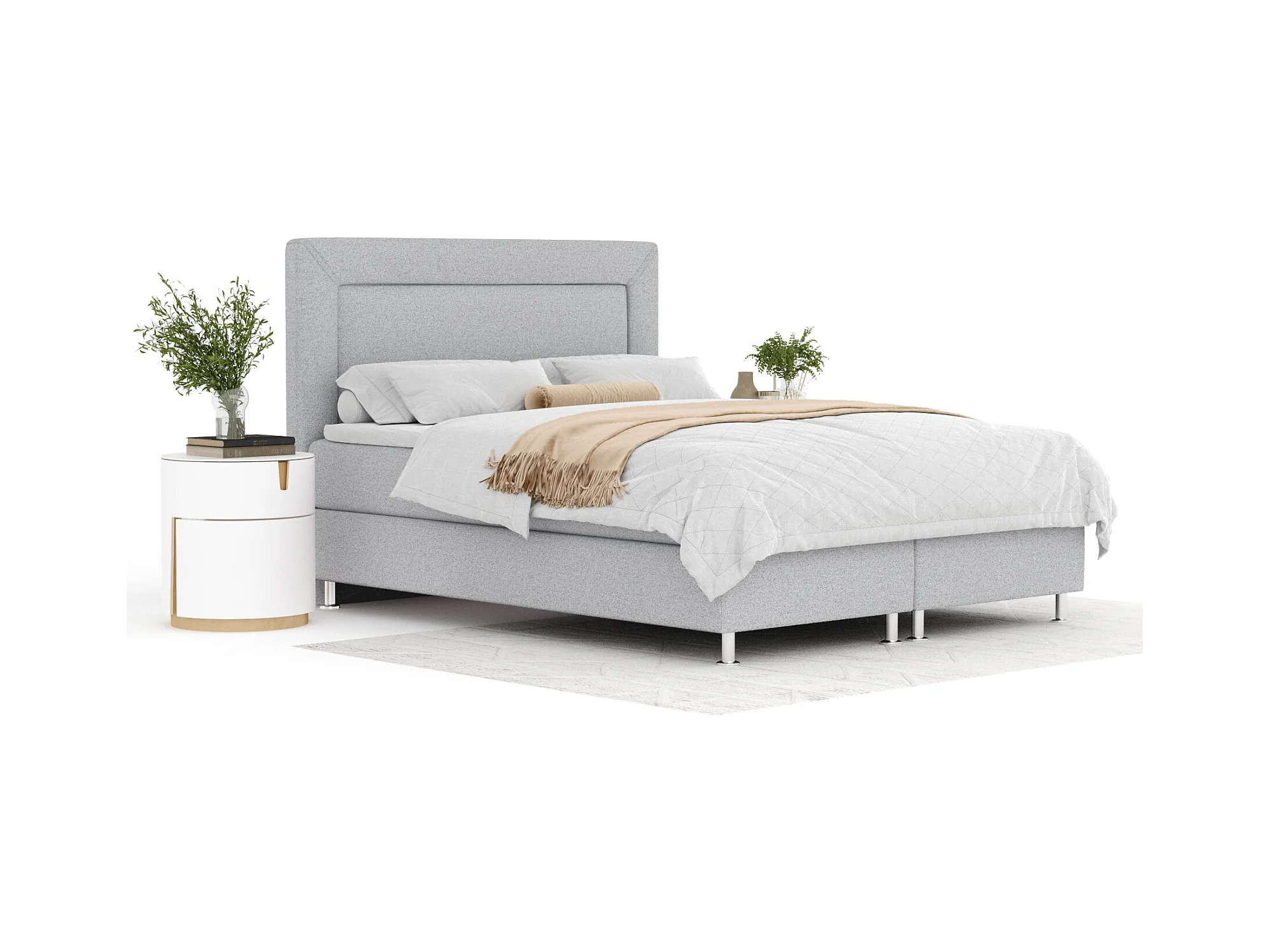 Lit boxspring en toile tissée Laguno - matelas - surmatelas - 200x200 cm - gris clair