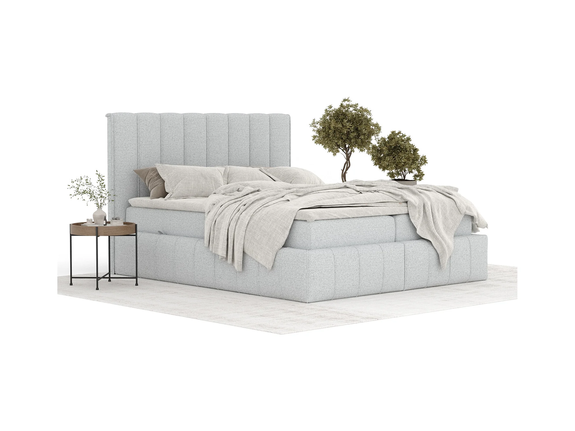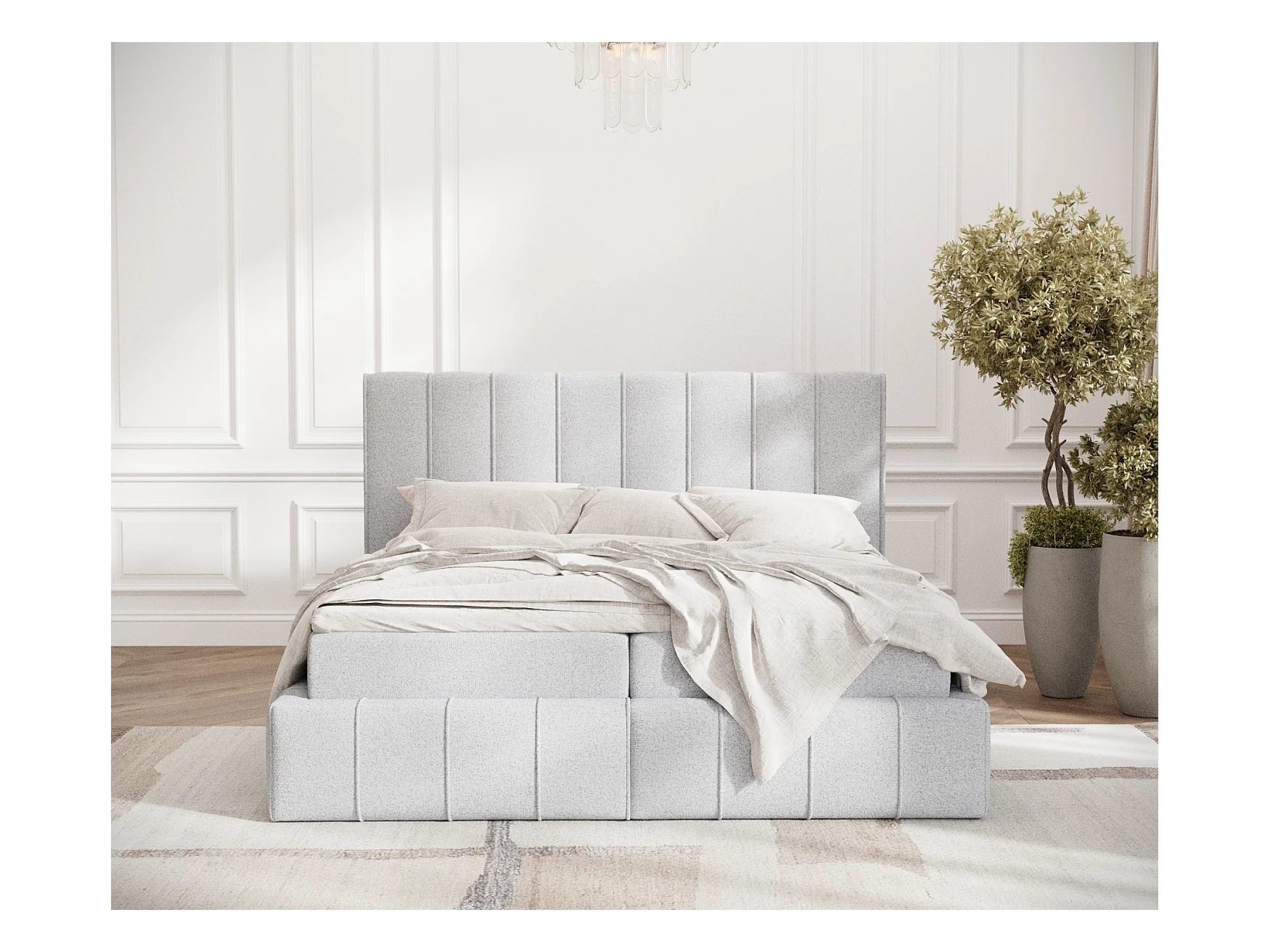 Lit boxspring en toile tissée Moretti - matelas - surmatelas - 160x200 cm - gris clair