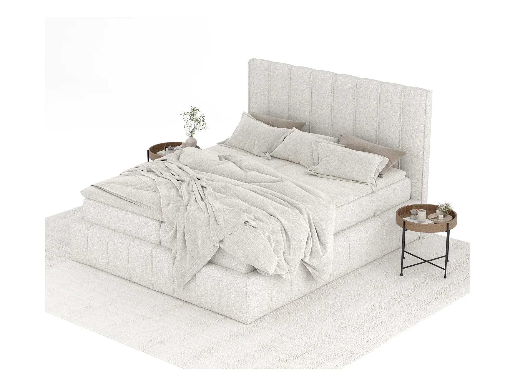 Lit boxspring en toile tissée Moretti - matelas - surmatelas - 180x200 cm - beige