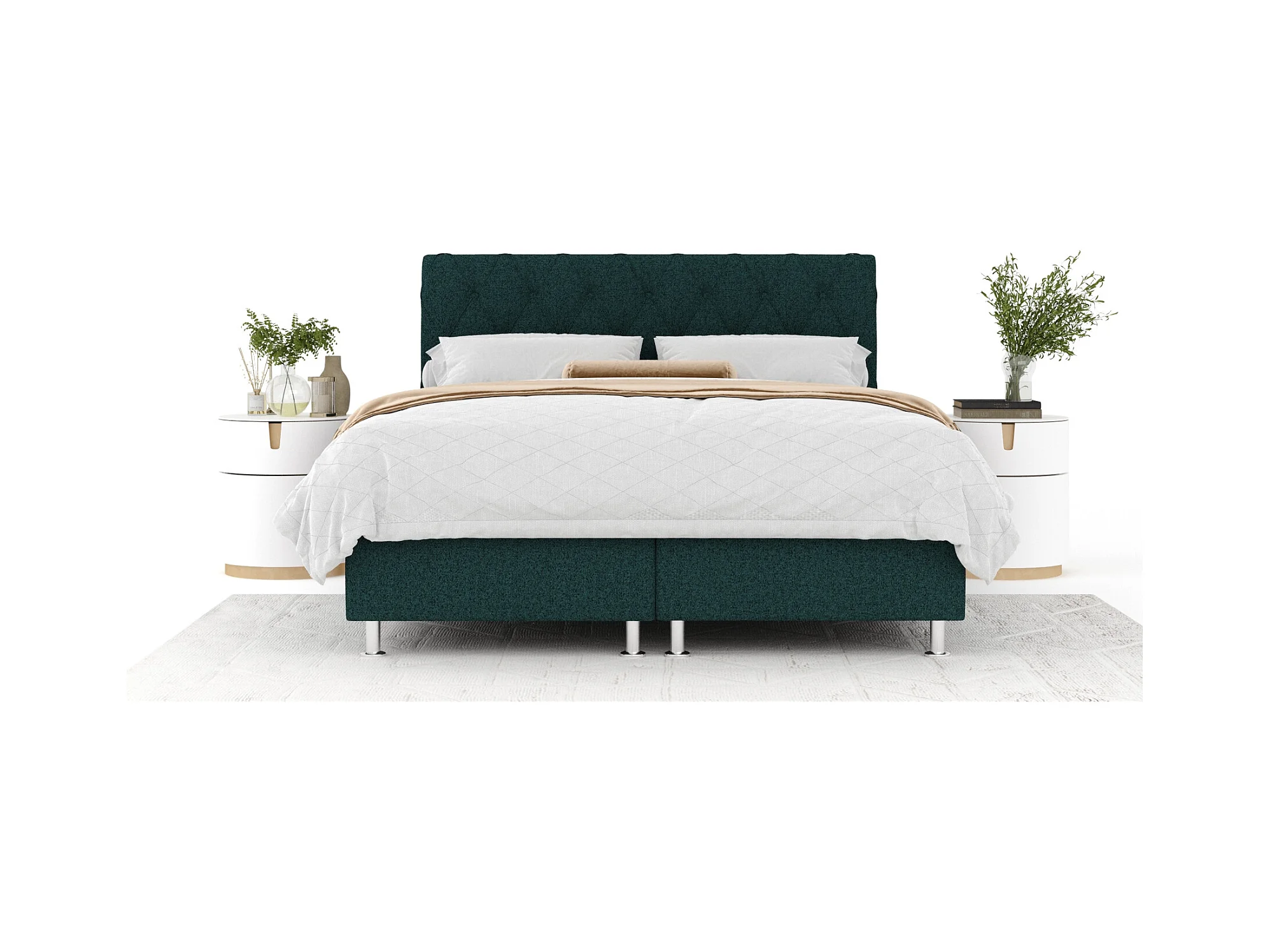 Lit boxspring en toile tissée Otus - matelas - surmatelas - 160x200 cm - vert