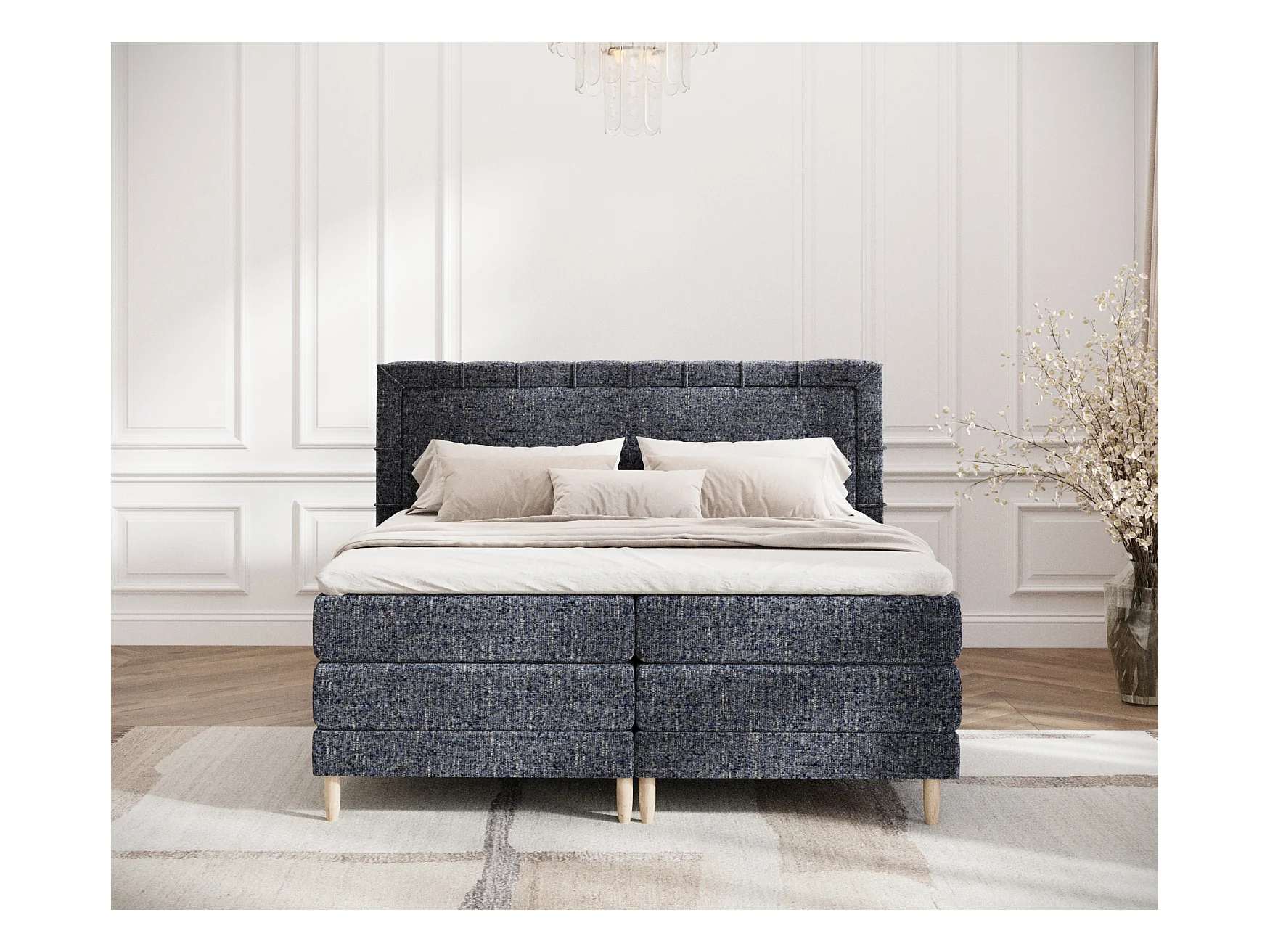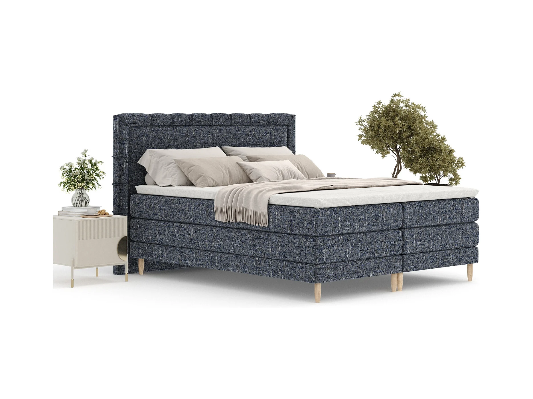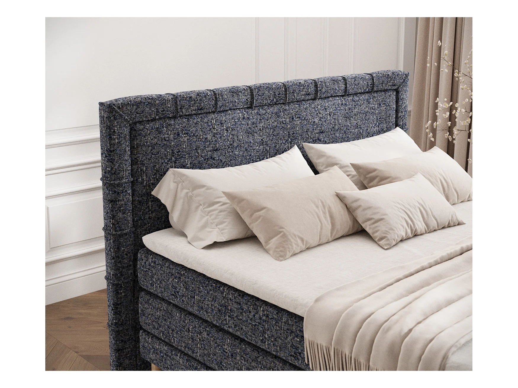 Lit boxspring en toile tissée Rimini - matelas - surmatelas - 180x200 cm - bleu marine