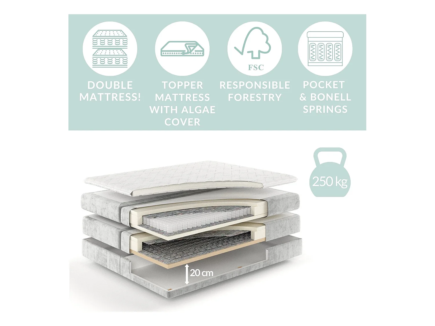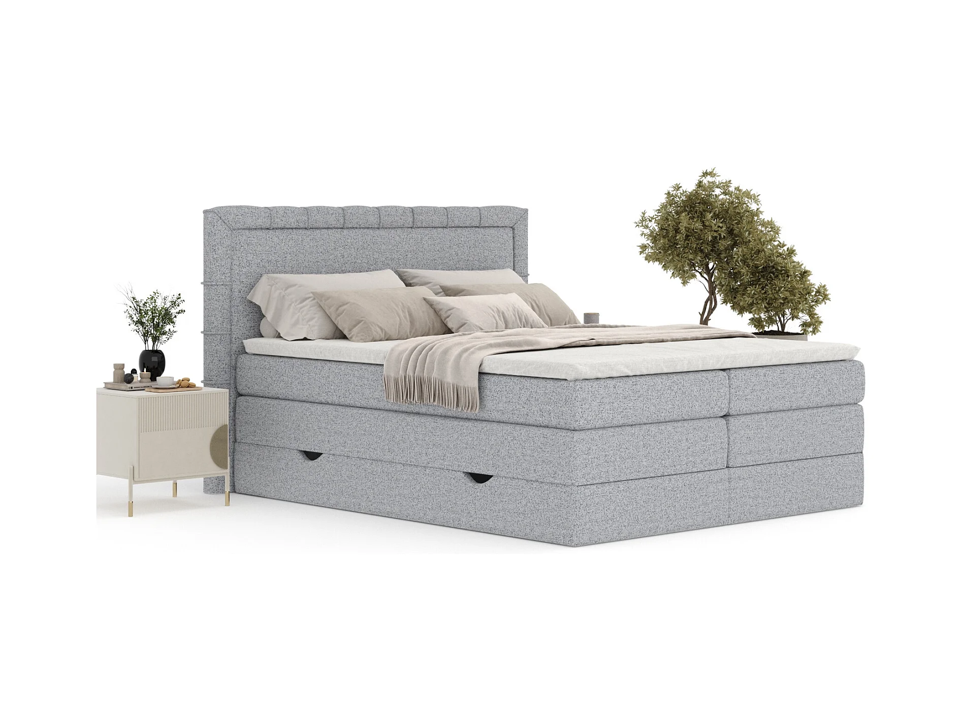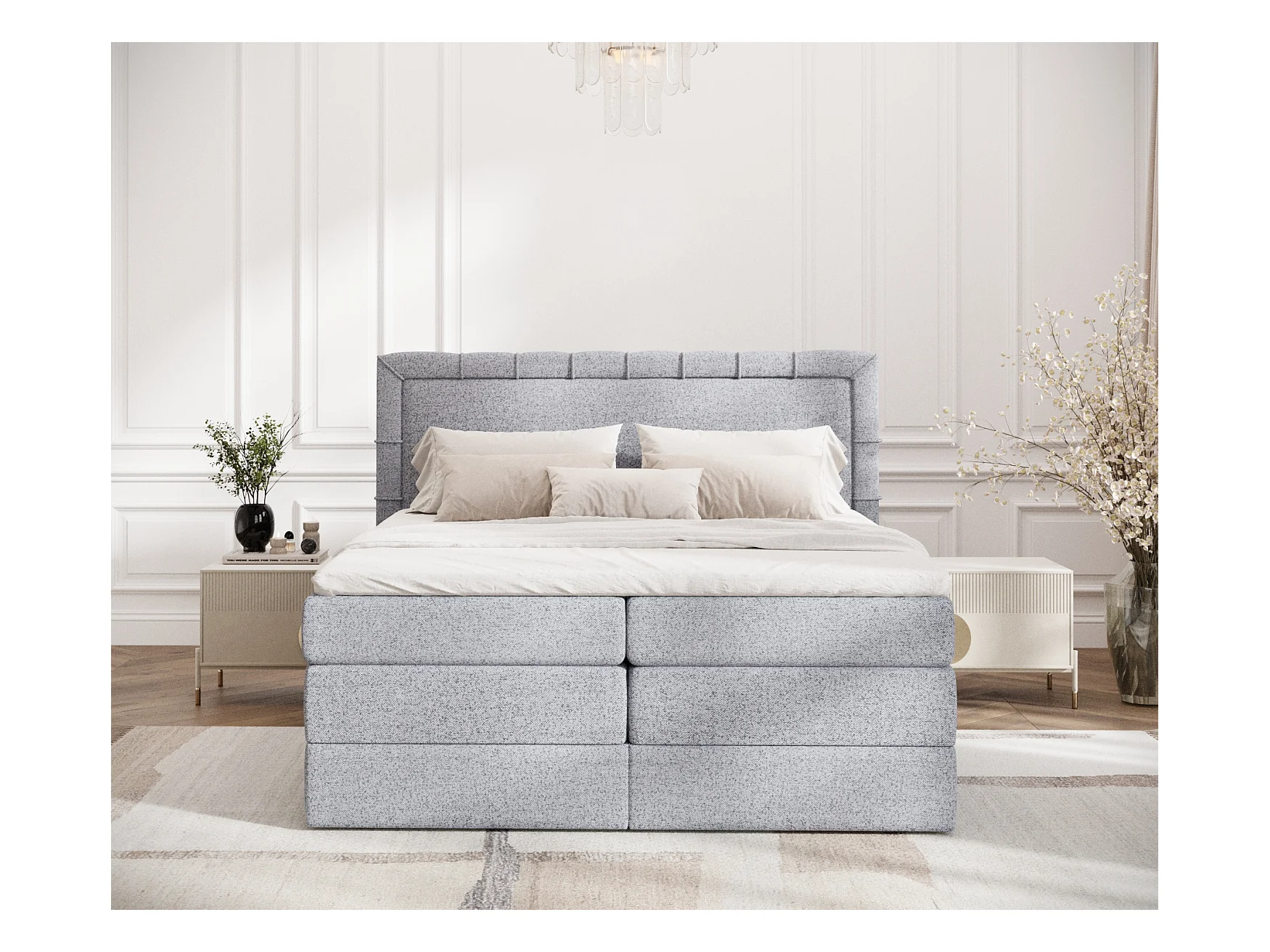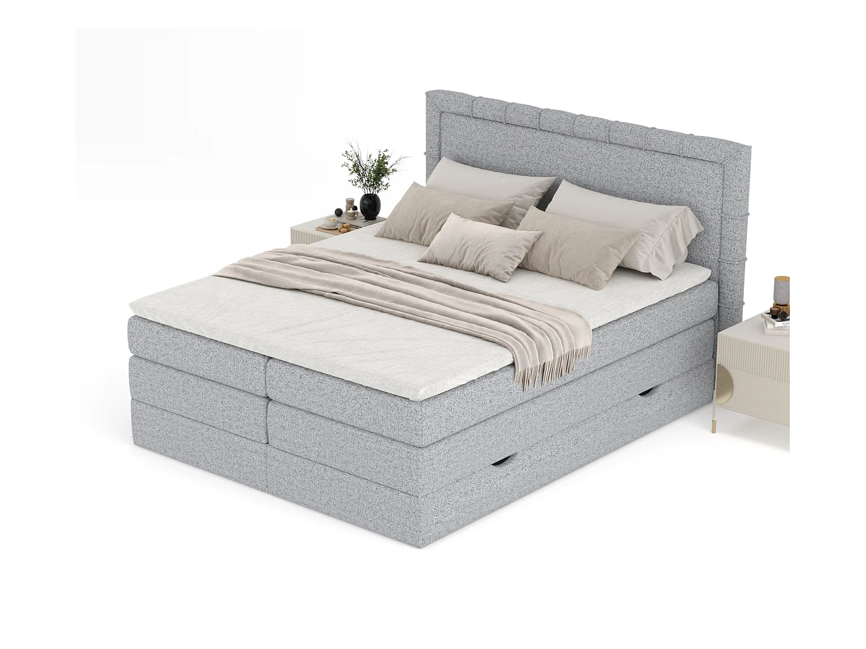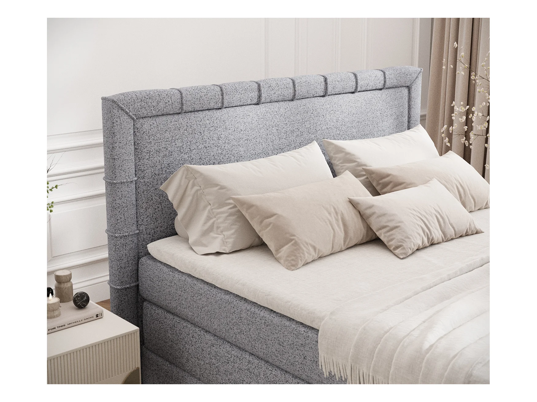 Lit boxspring en toile tissée Rosabel - matelas - surmatelas - 180x200 cm - gris
