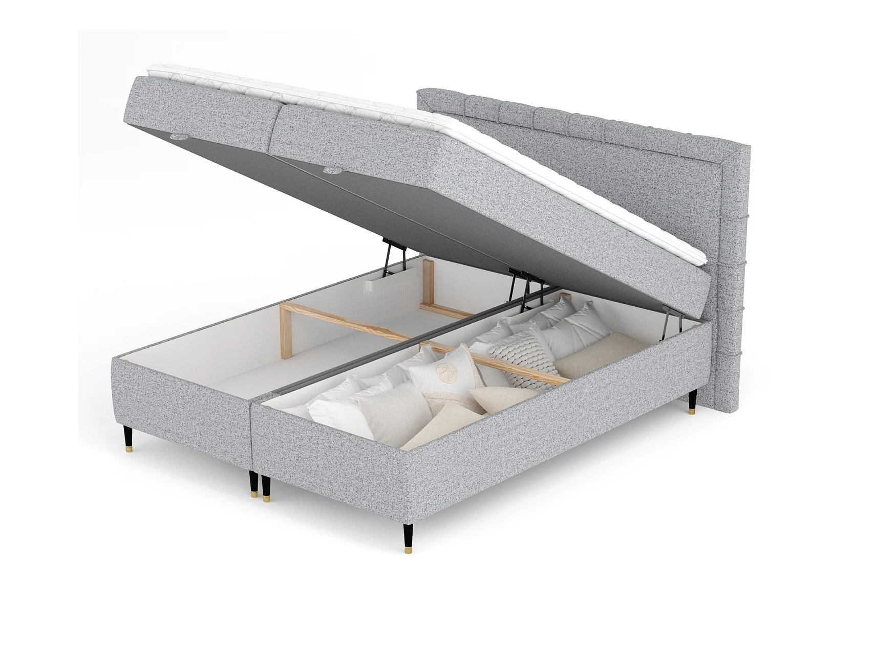 Lit boxspring en toile tissée Voyage - matelas - surmatelas - 160x200 cm - gris