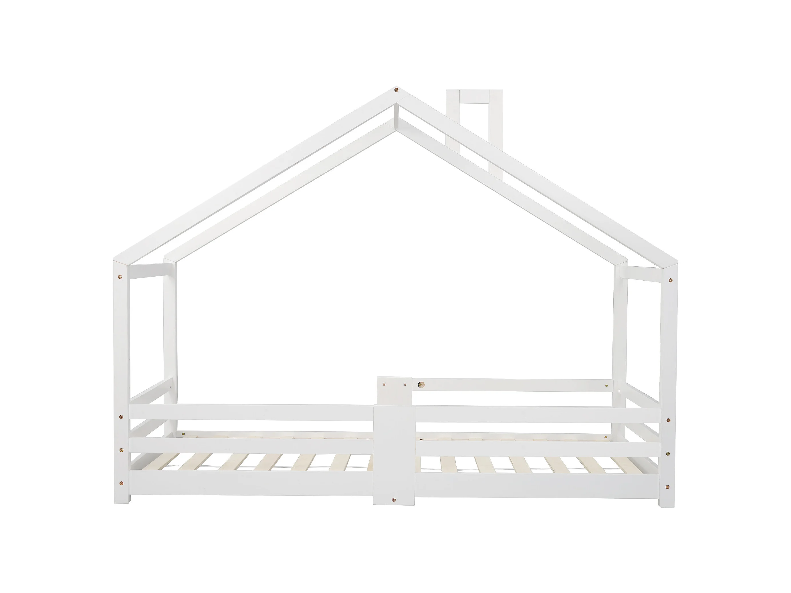 Lit cabane 90x200 cm avec protection anti-chute - sommier à lattes en bois - blanc (sans matelas)