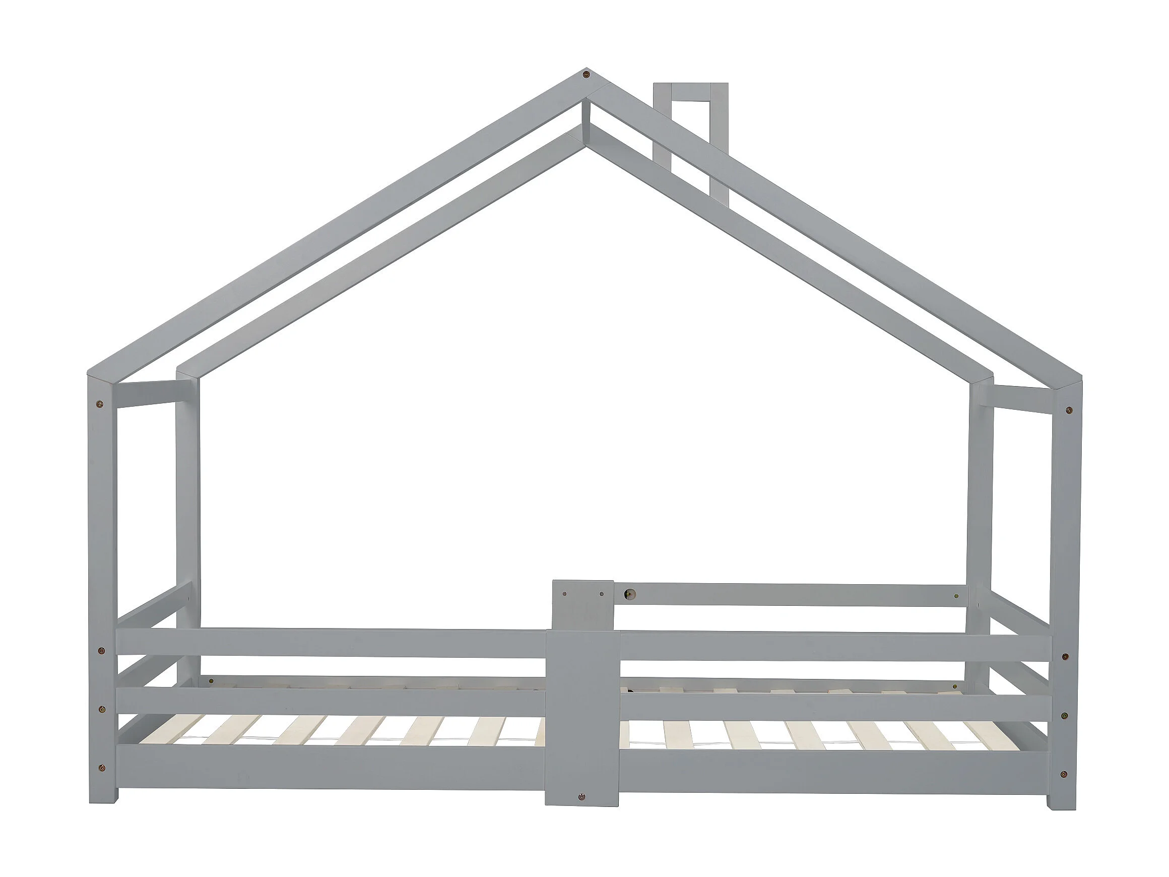 Lit enfant 90x200 cm, avec cheminée et barrière de sécurité, 15 lattes rigides, bois massif gris(Sans matelas)