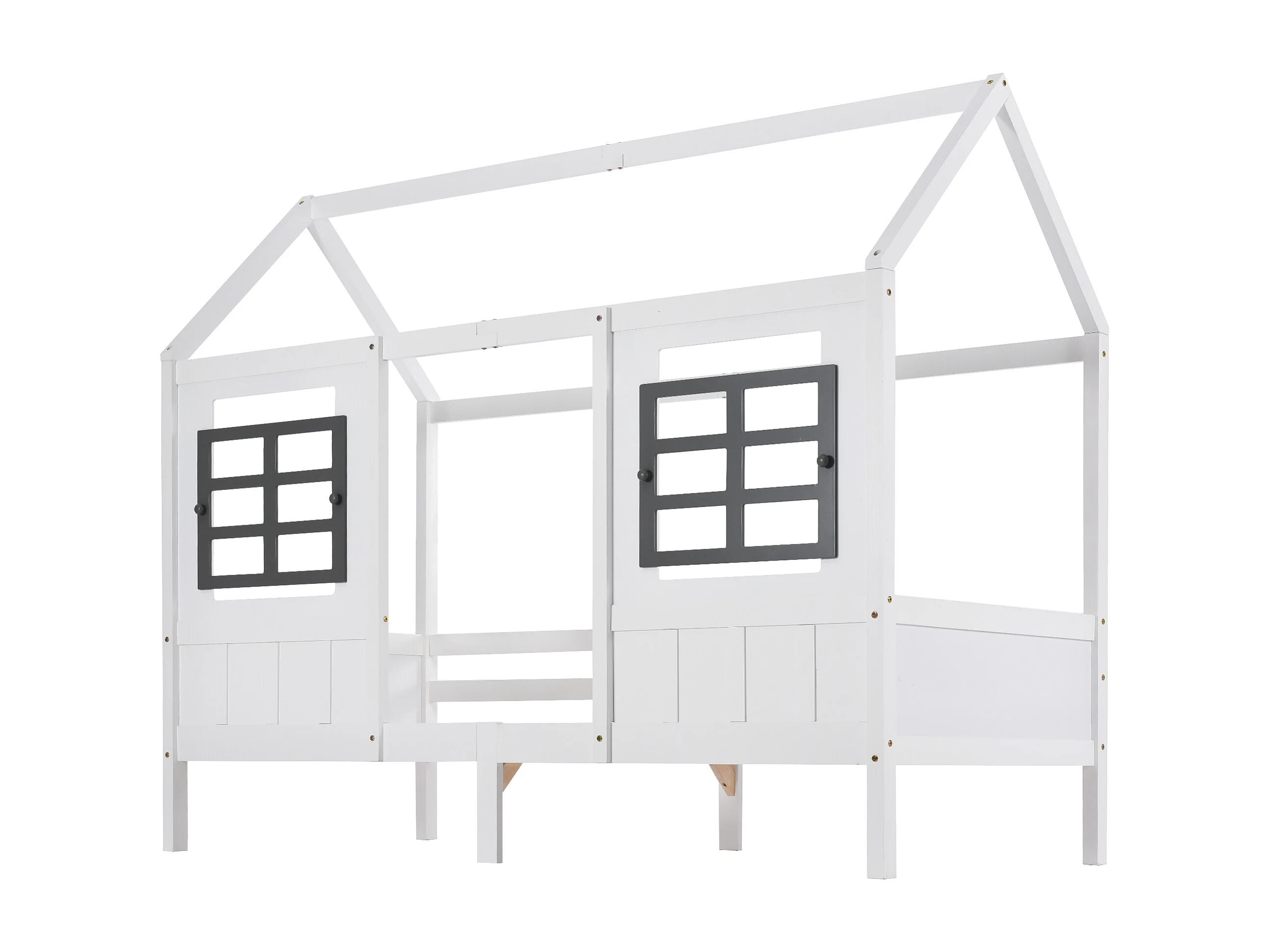 Lit cabane 90x200cm - lit enfant simple avec sommier à lattes et lit gigogne 90x200cm, sans matelas- blanc