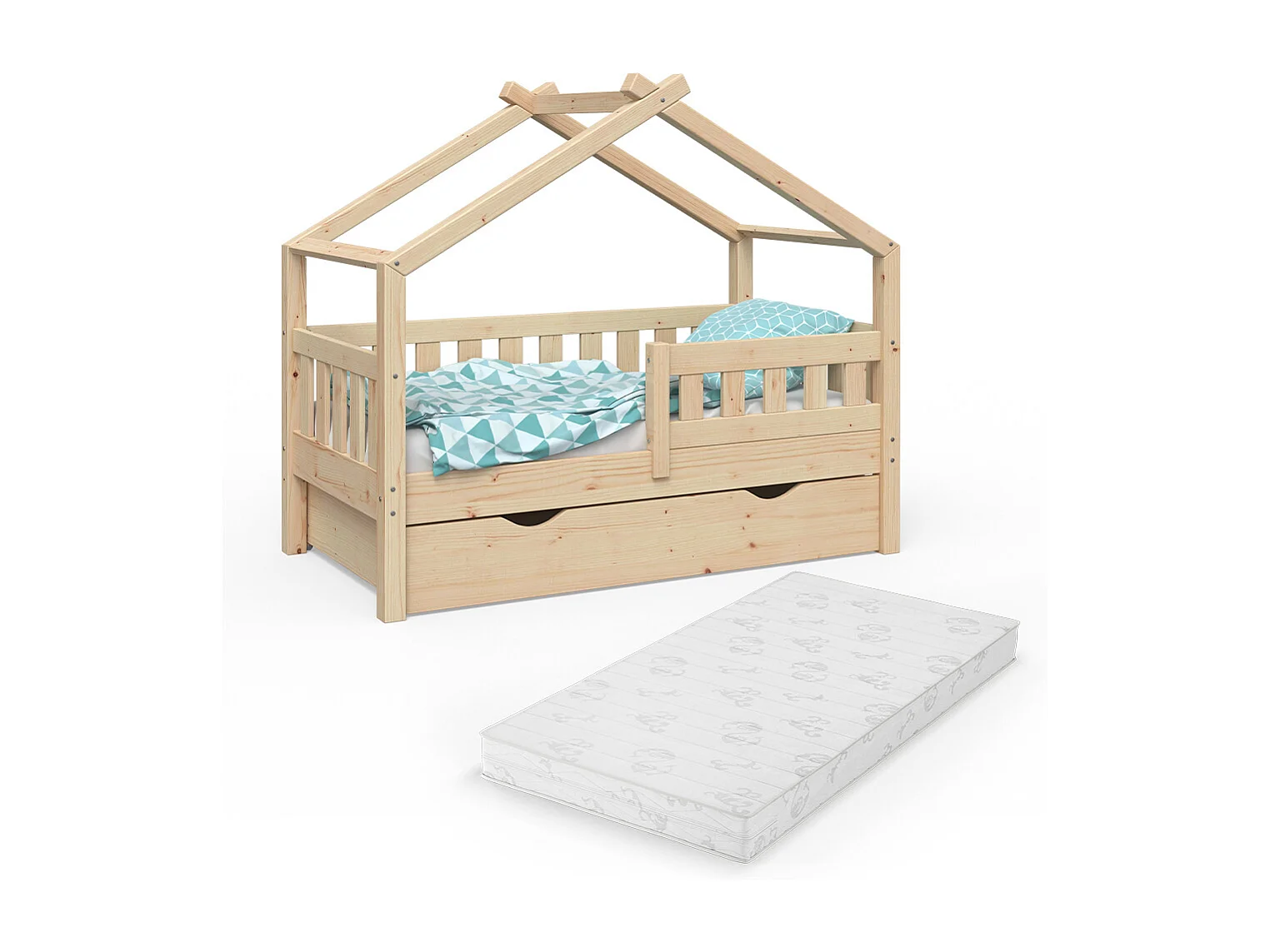 Lit cabane naturel bois 147.6x77x127.9 design