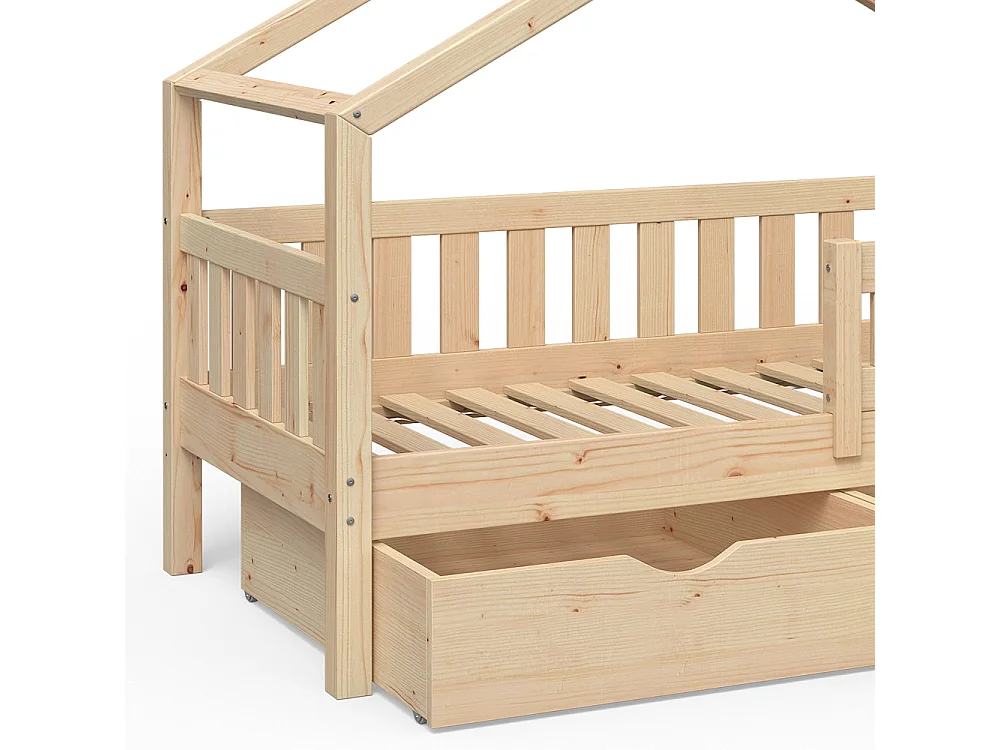 Lit cabane naturel bois 167.6x87.6x133.6 design