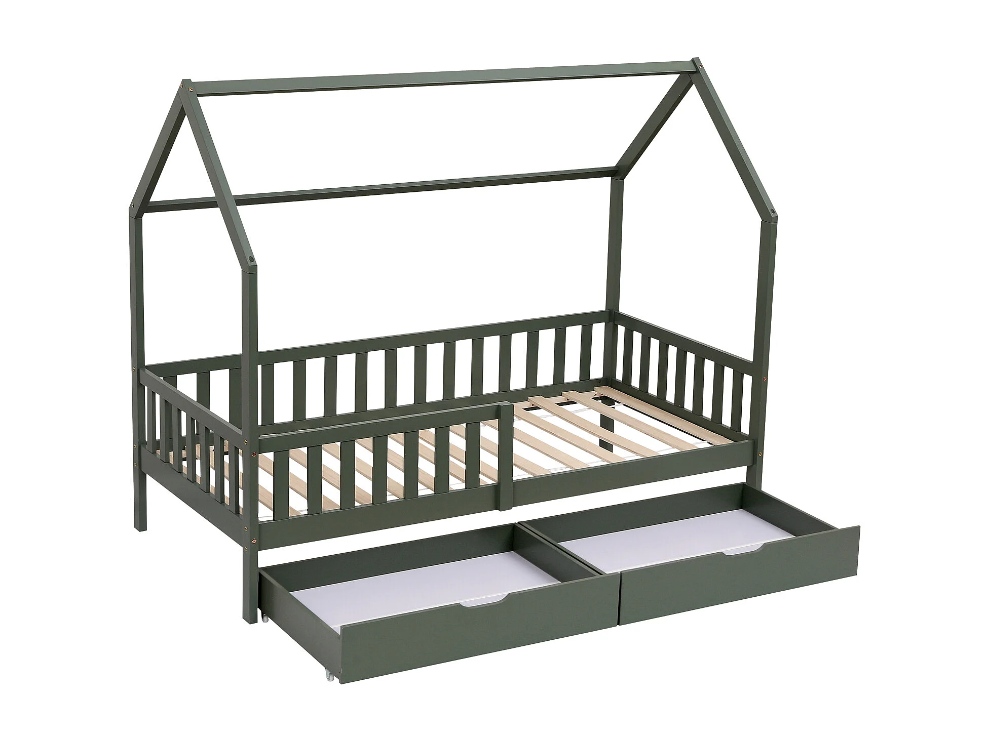 Lit cabane pour enfant 190x90cm vert avec tiroirs MARCEAU - HAPPY GARDEN