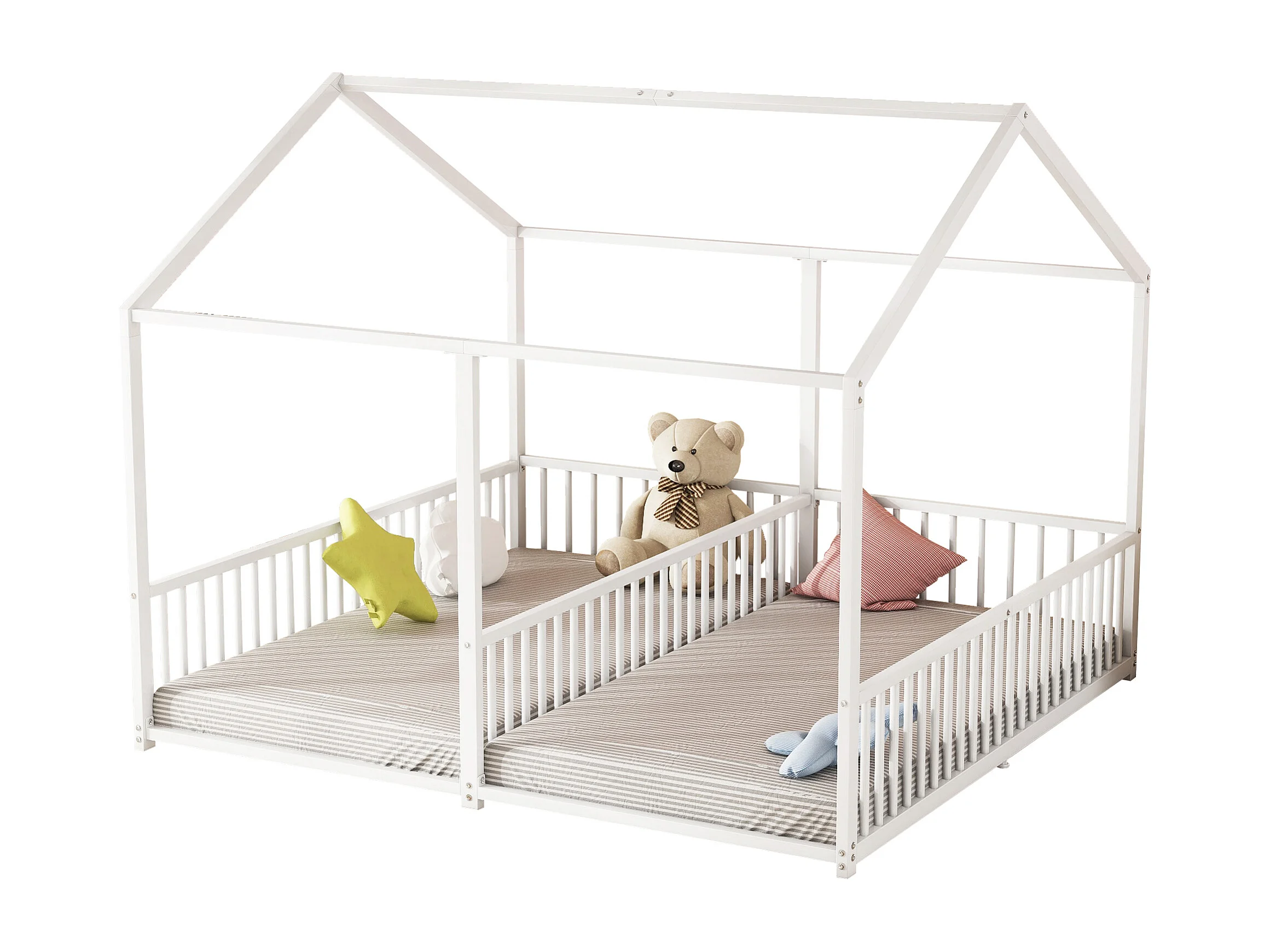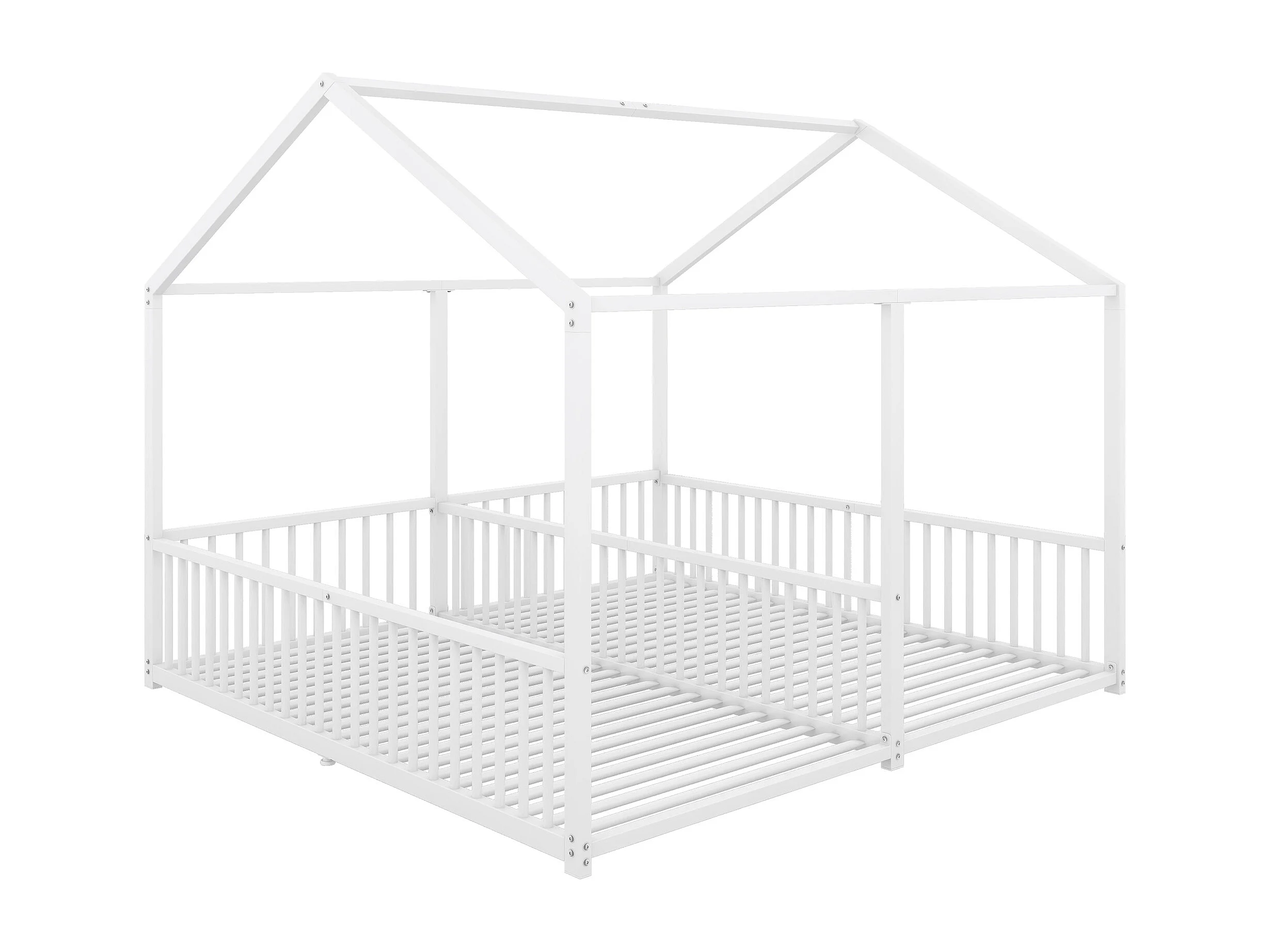 Lit cabane simple 90 x 200cm, garde-corps, conception de lit double blanc, en métal blanc, sans matelas