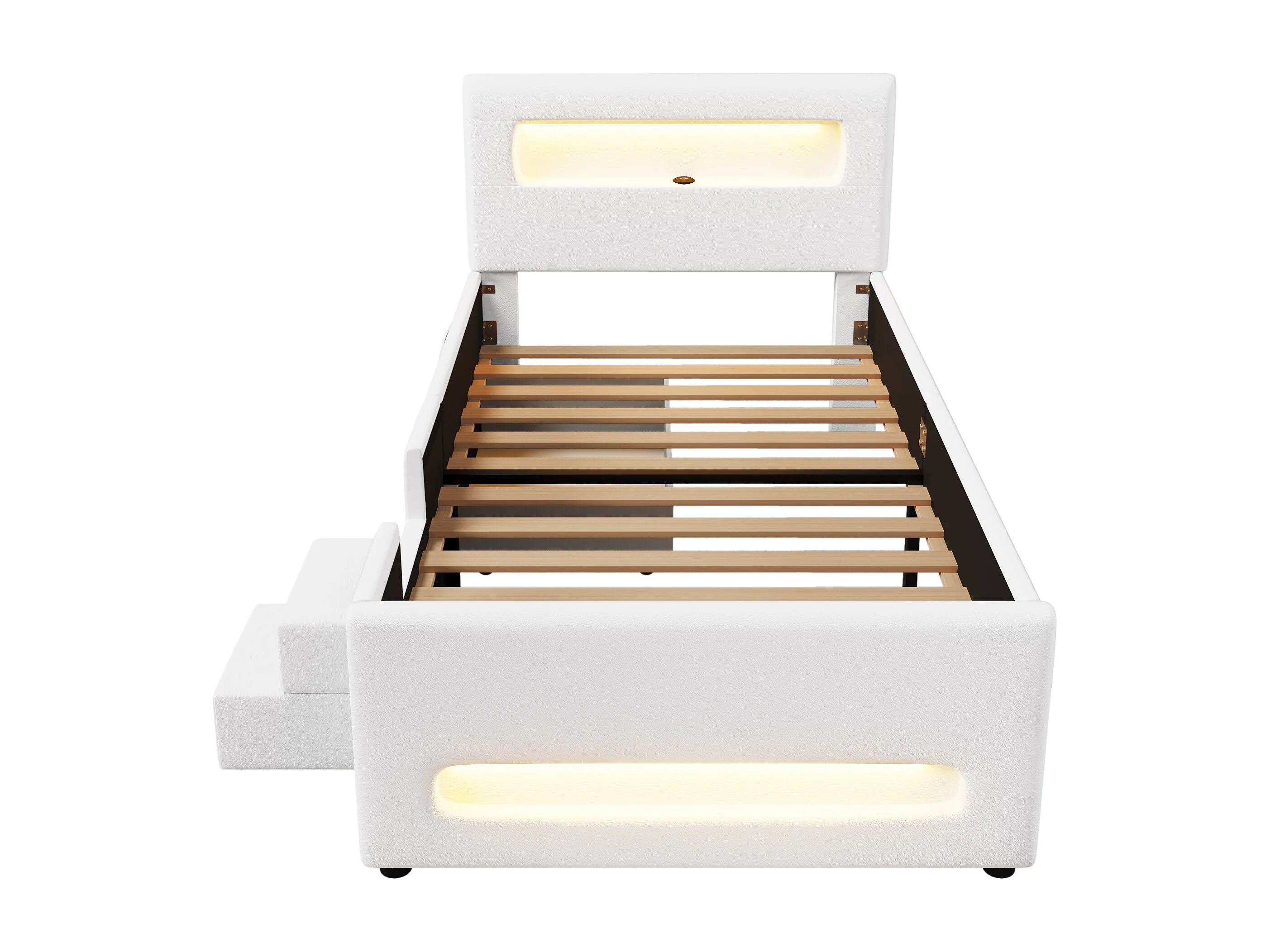 Lit enfant 90x200 cm - avec quatre tiroirs - avec marches - avec éclairage LED - avec port de charge USB + Type-C - blanc