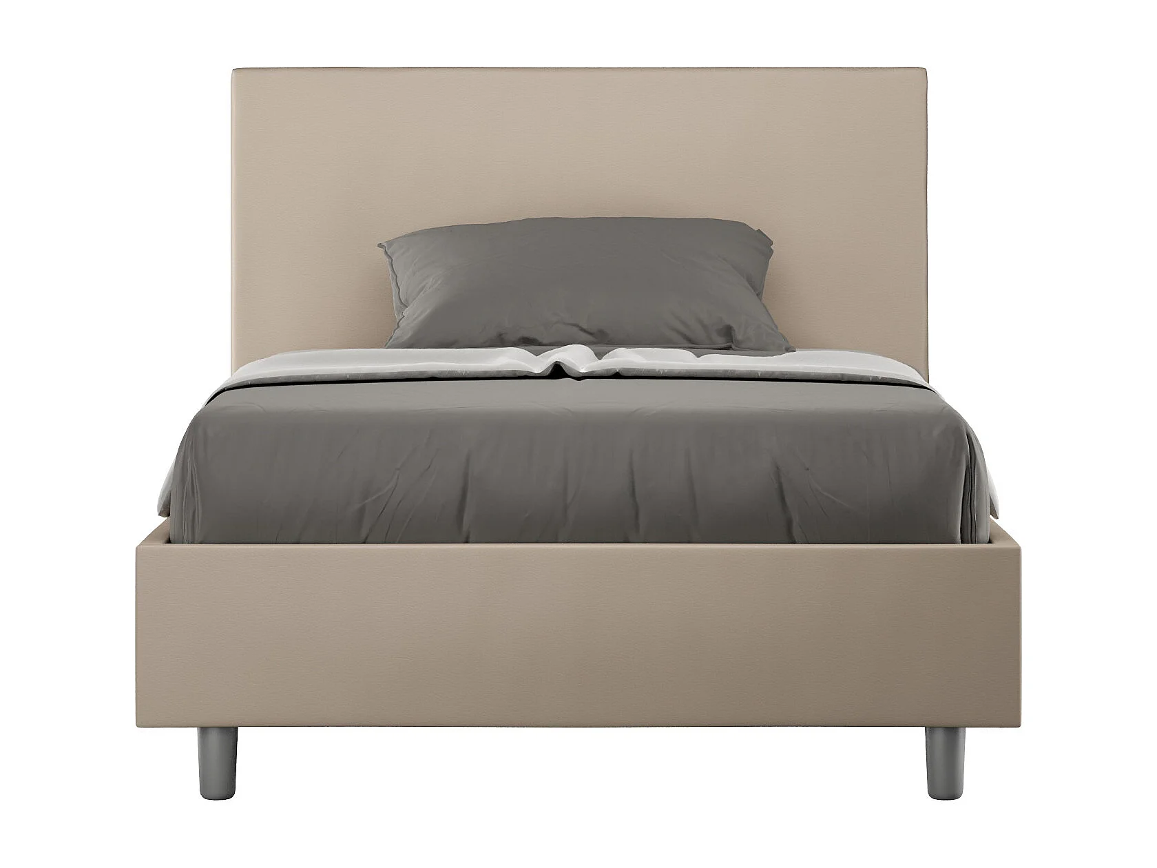 Lit 1 place et demi coffre rembourré 120x190 similicuir taupe Adele