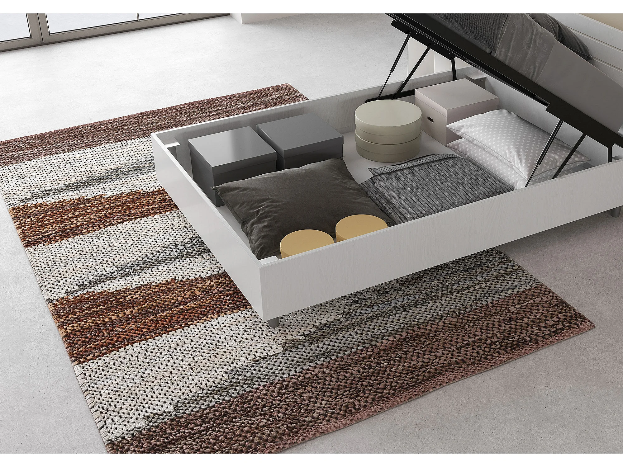 Lit 1 place et demi coffre 120x200 tête de lit inclinée avec des lames frêne blanc Ankel