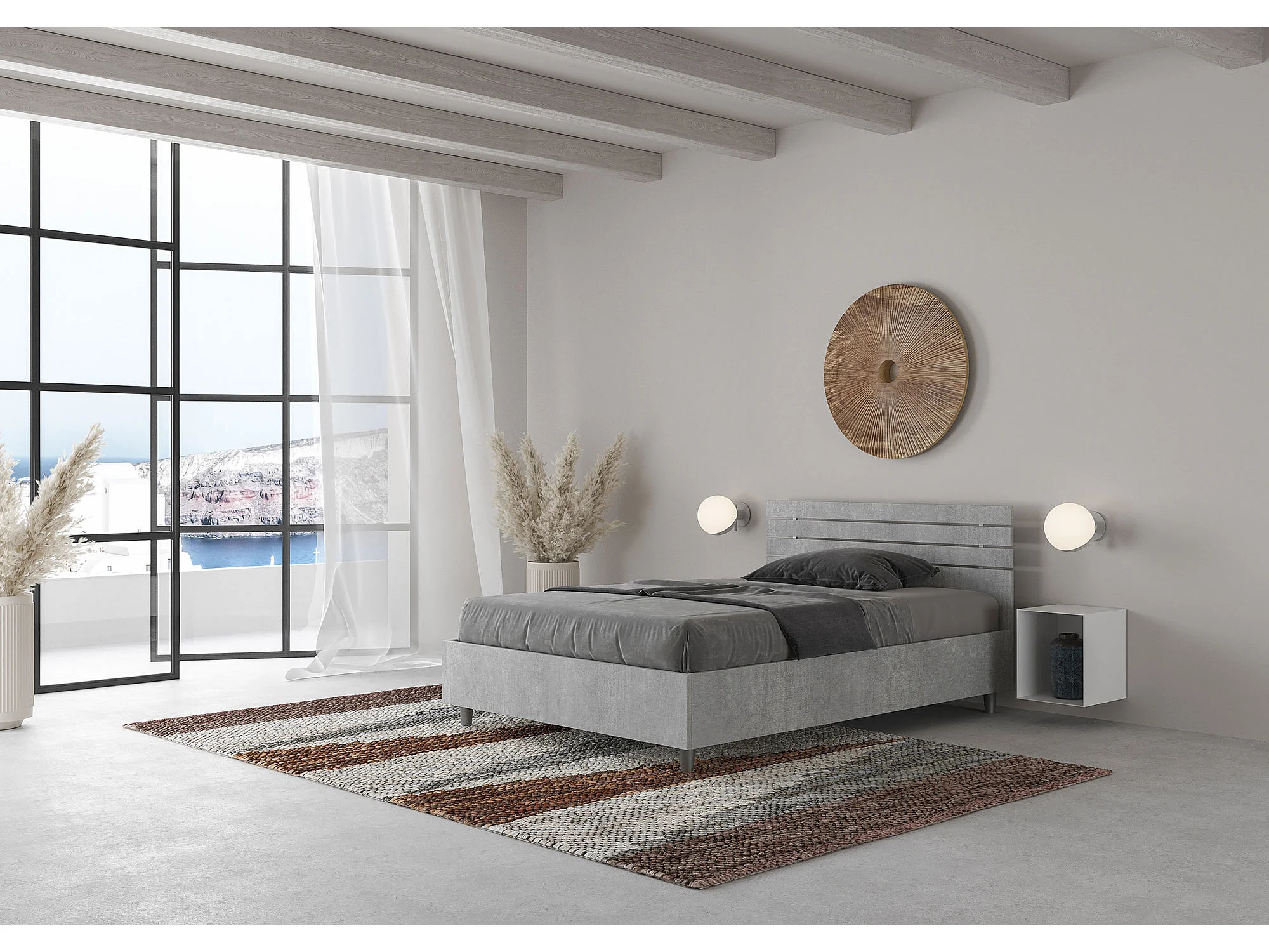 Lit 1 place et demi coffre 120x200 tête de lit droite avec des lames gris béton Ankel