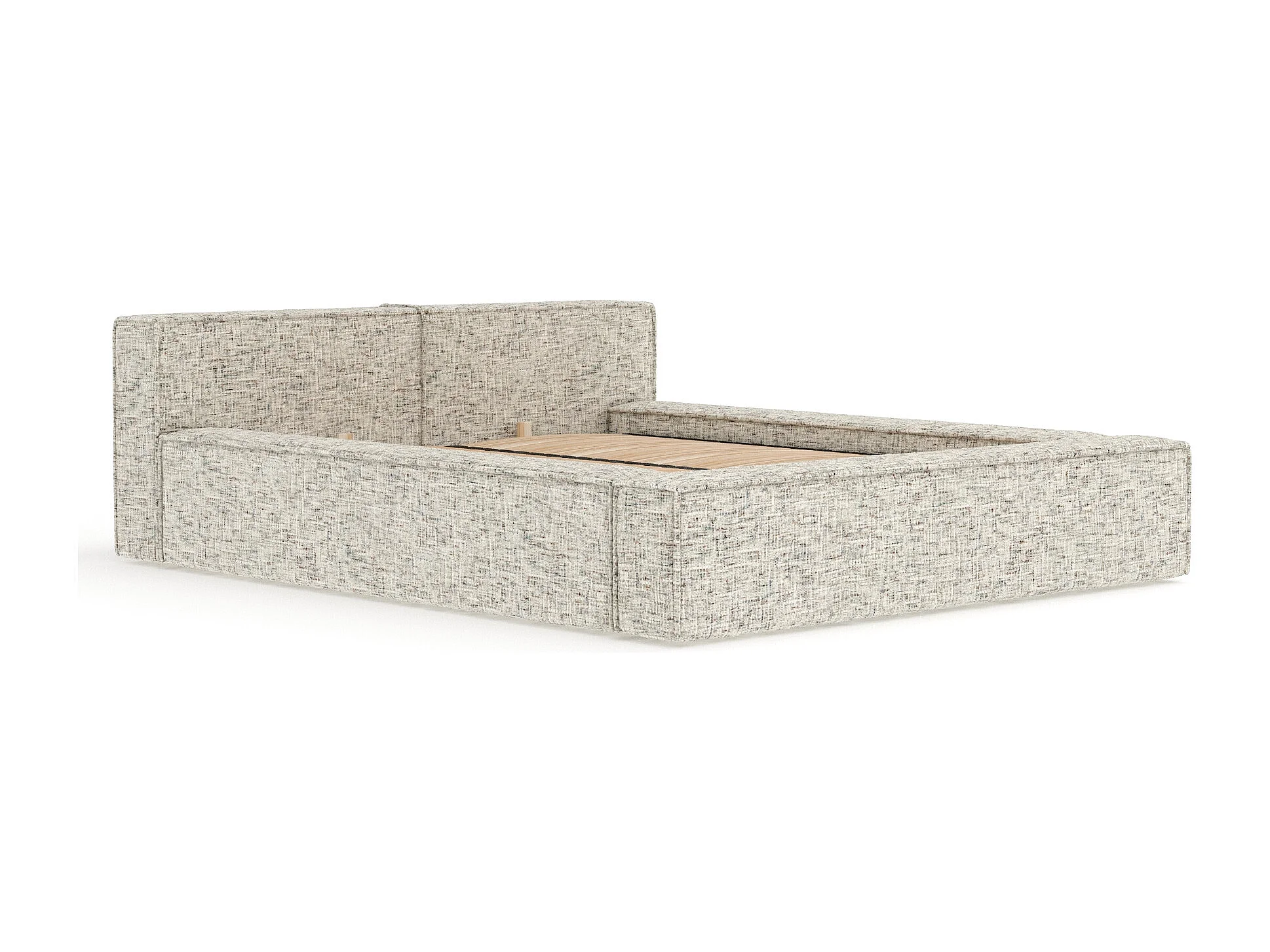 Lit coffre 140 x 200 cm avec tête de lit VOLIERA - en tissu tressé - beige