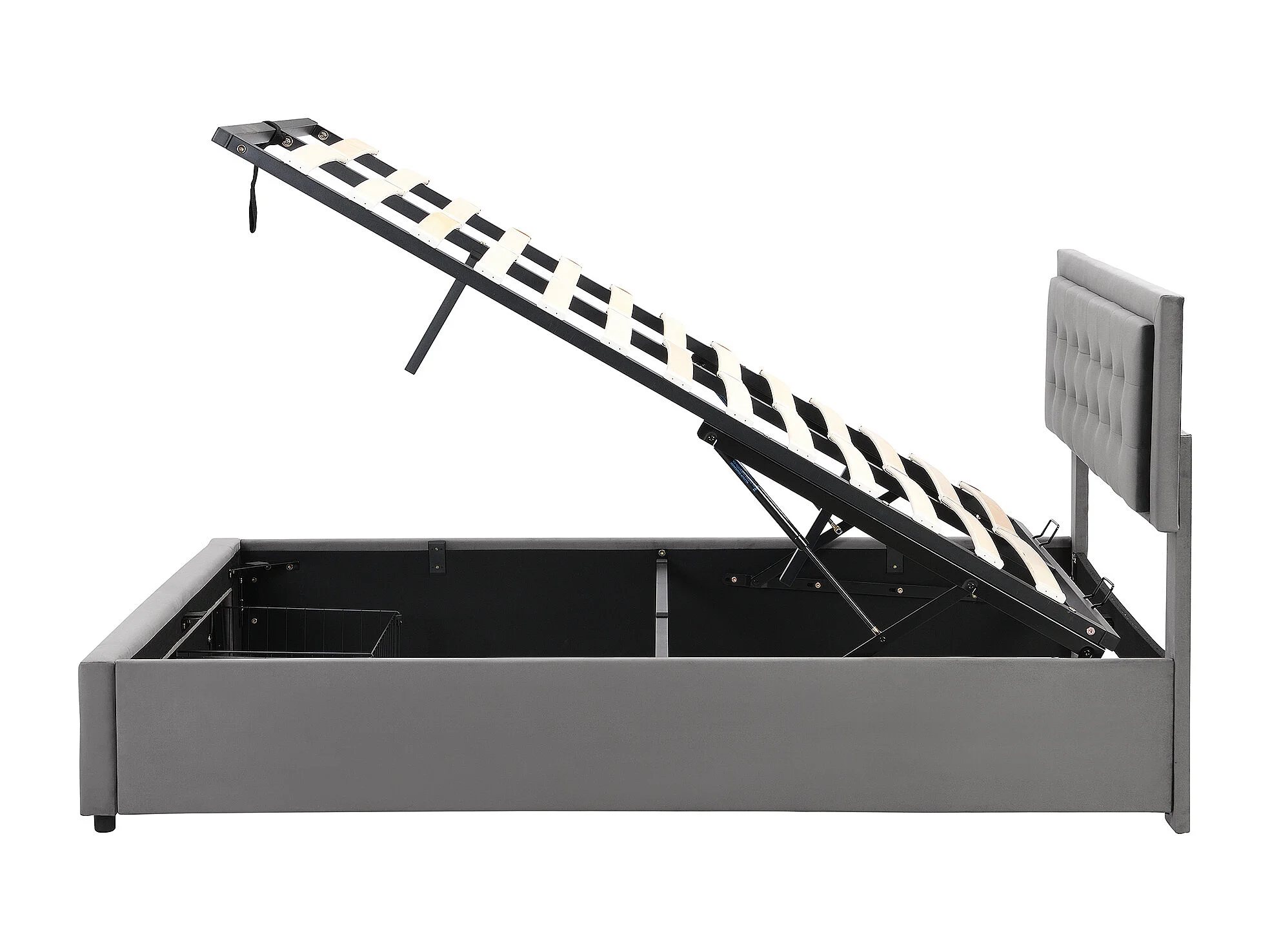 Lit coffre 140x190 cm avec sommier - 2 tiroirs et tête de lit réglable en hauteur - velours - gris (sans matelas)