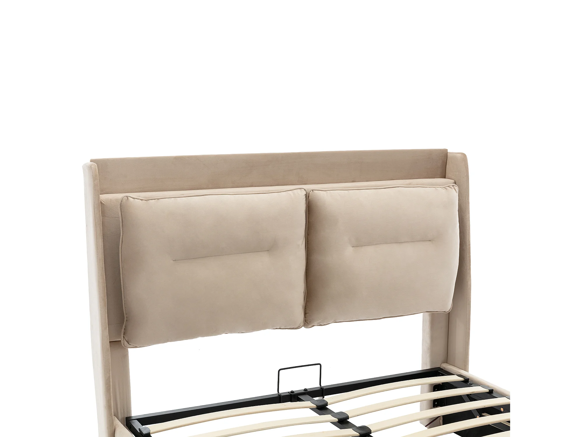 Lit coffre 140x190 cm avec LED réglable et rangement multifonctionnel, velours, Beige (Sans matelas)