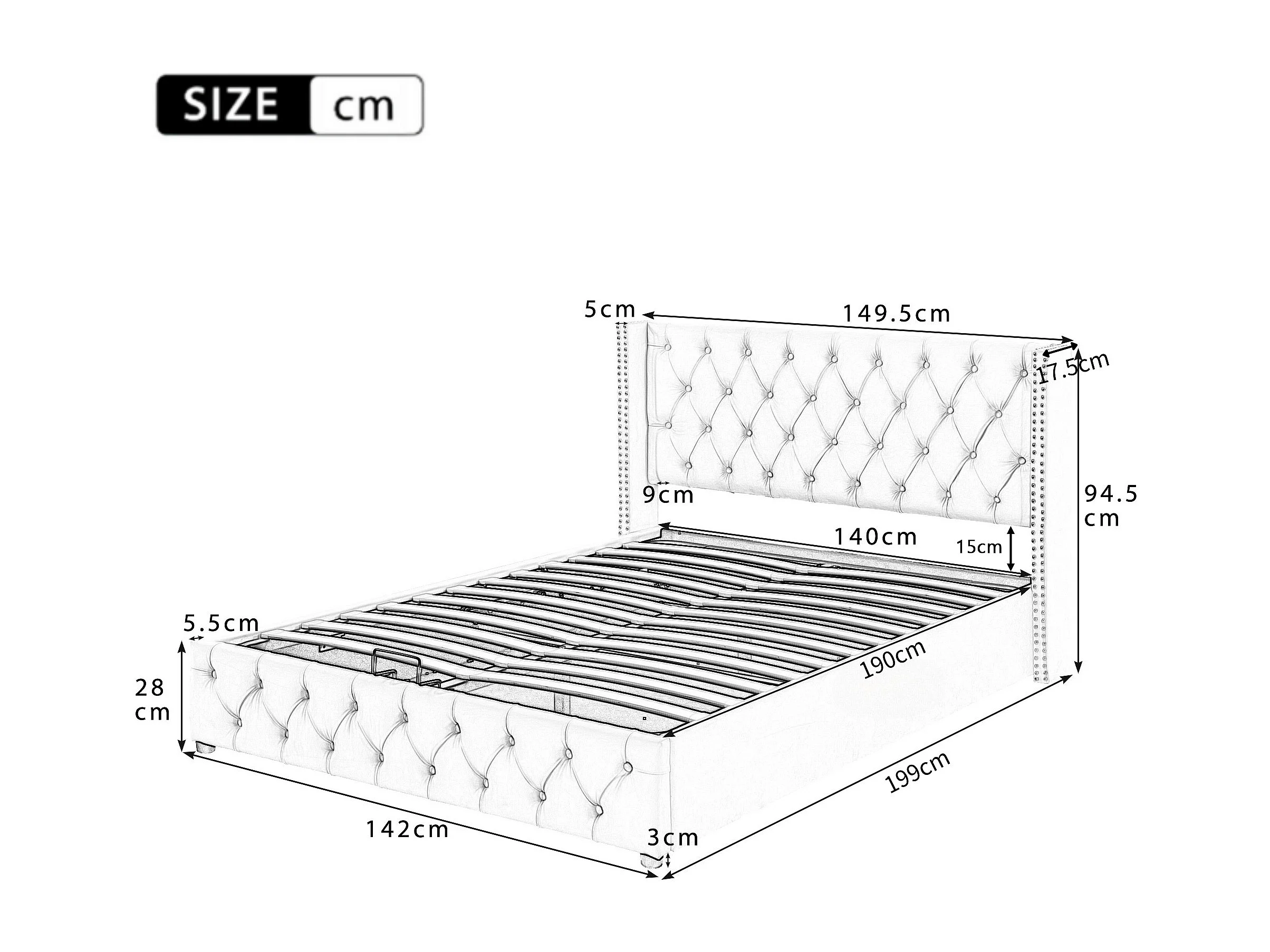 Lit coffre 140x190 cm avec rangement hydraulique et effet capitonné velours beige (Sans matelas)